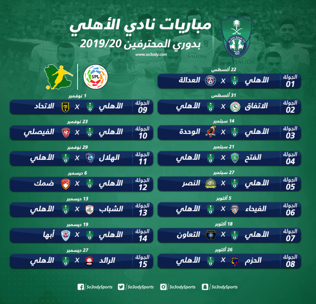 ويستعرض "سعودي سبورت" جدول مباريات الأهلي في النصف الأول من دوري المحترفين..