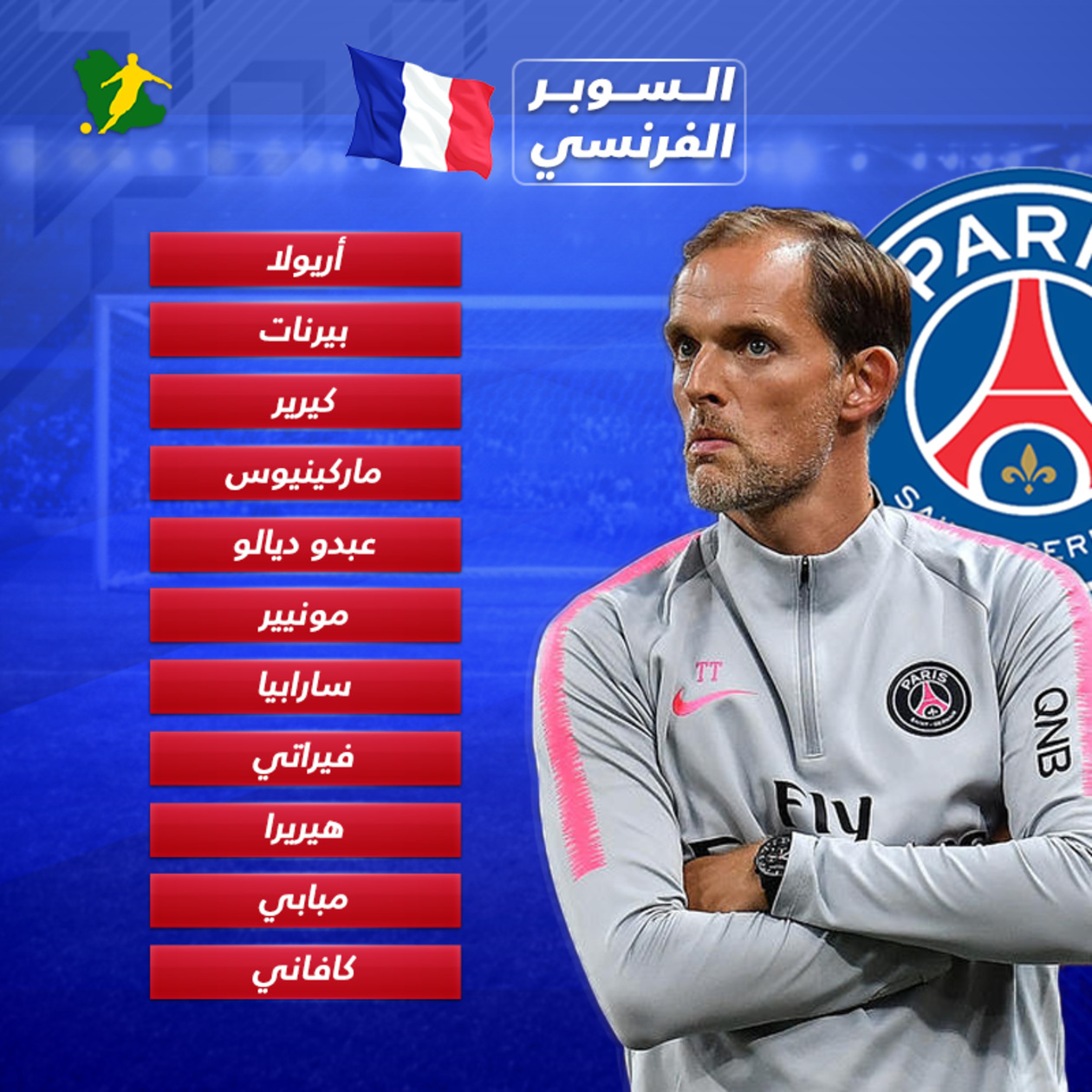 أعلن الألماني توماس توخيل، المدير الفني لفريق باريس سان جيرمان، تشكيل فريقه في مواجهة رين، ضمن منافسات نهائي كأس السوبر الفرنسي.