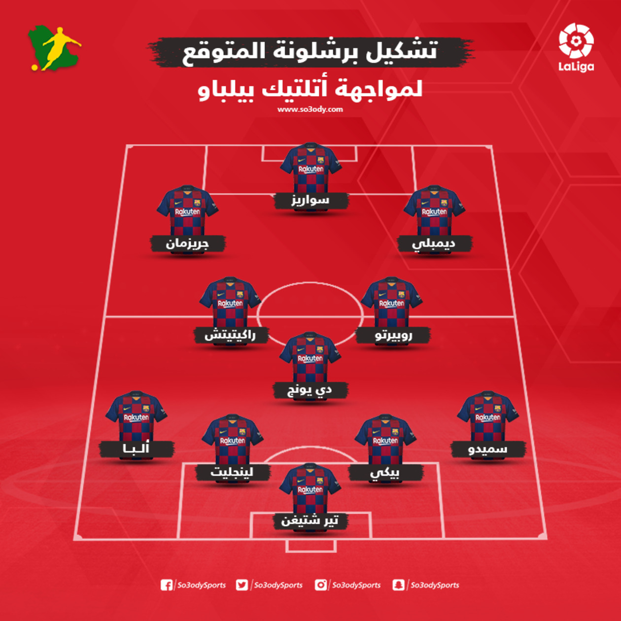 وبناء على ذلك؛ فإن تشكيل برشلونة المتوقع أمام بيلباو، سيكون على النحو التالي..