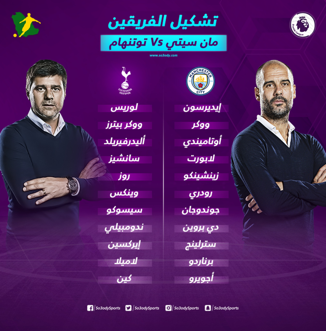 ويغيب عن تشكيلة السيتي المدافع جون ستونز، فيما يعود للمشاركة أساسياً الثنائي الذي لم يبدأ المباراة الأولى برناردو سيلفا وسيرجيو أجويرو.