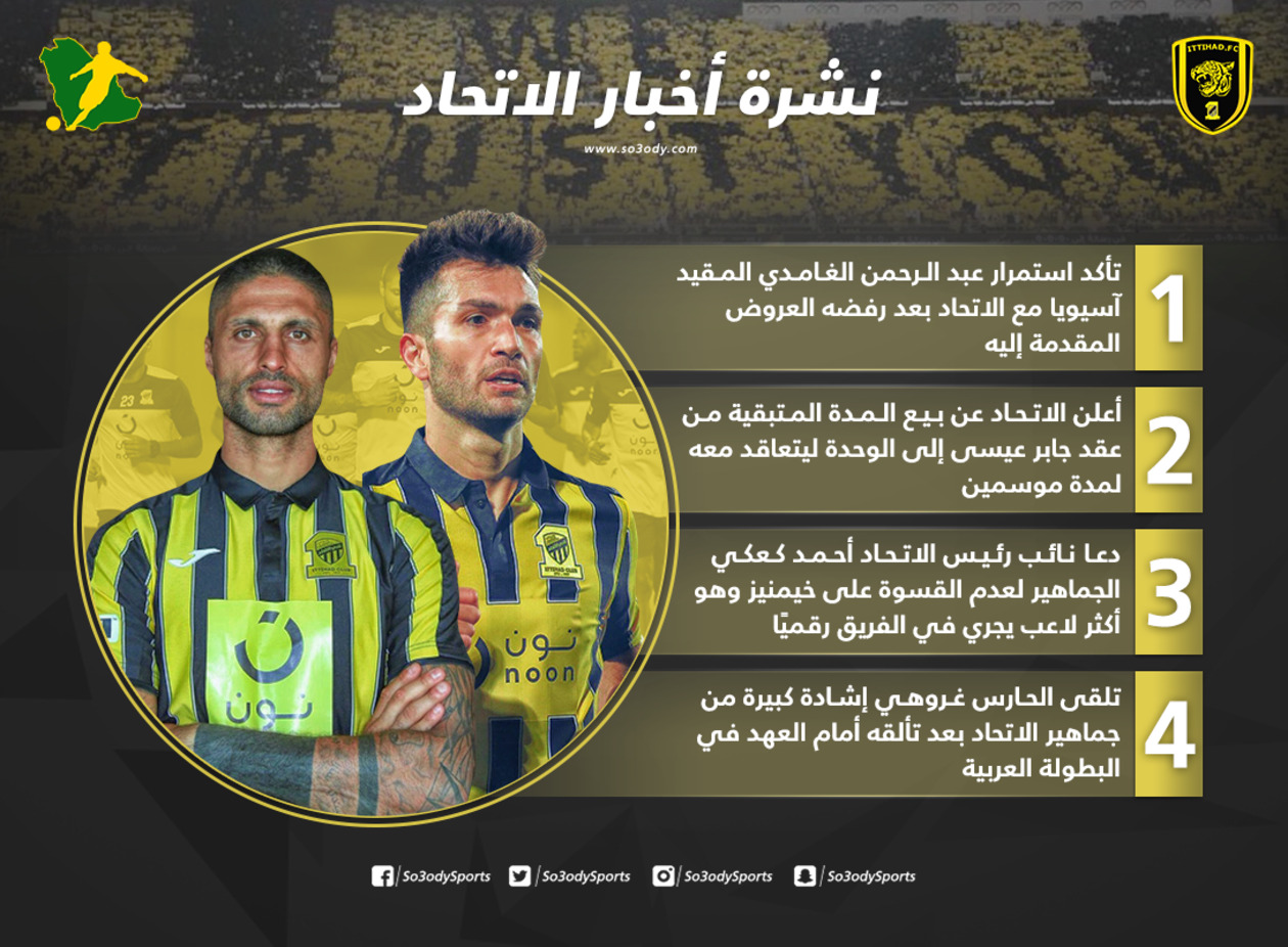 - تأكد استمرار عبد الرحمن الغامدي المقيد آسيويا مع الاتحاد بعد رفضه العروض المقدمة إليه.