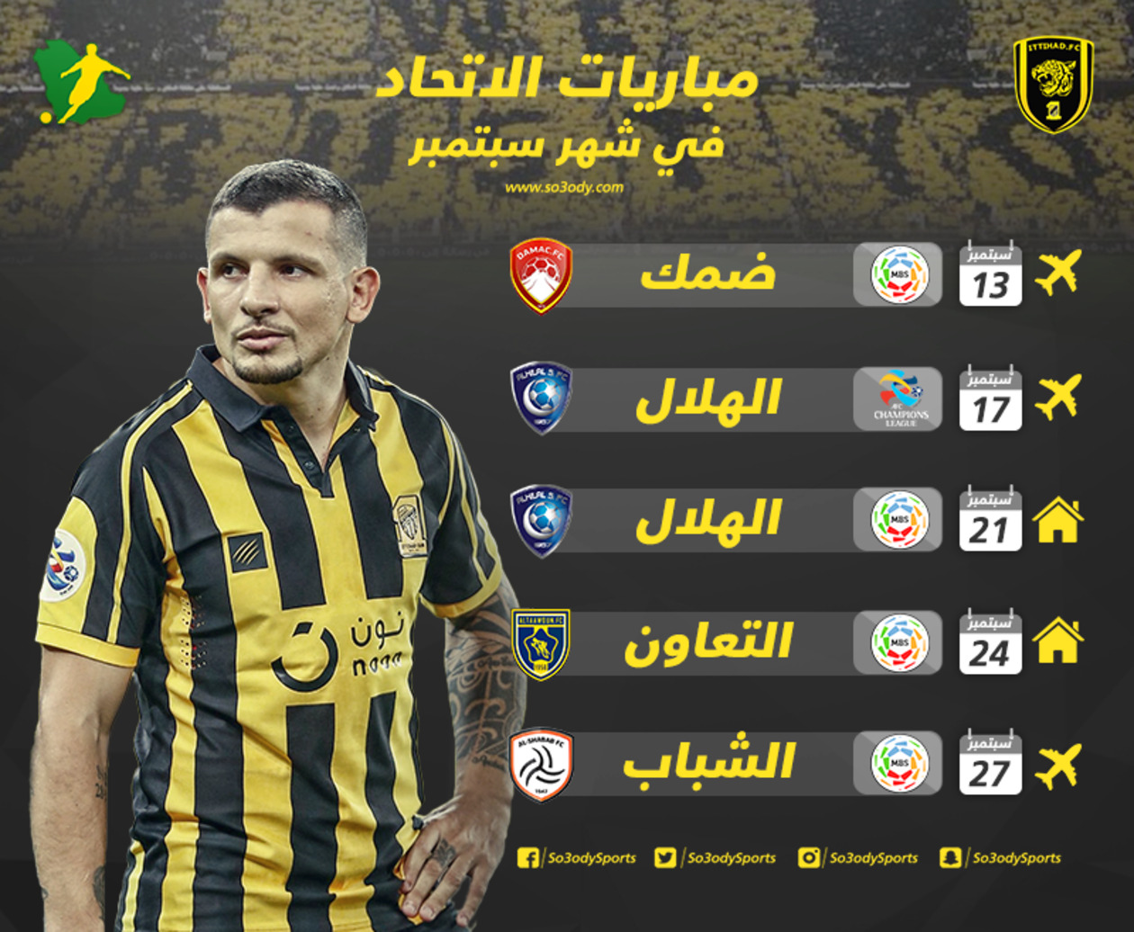 -  وفيما يلي جدول مباريات الاتحاد، في شهر سبتمبر..