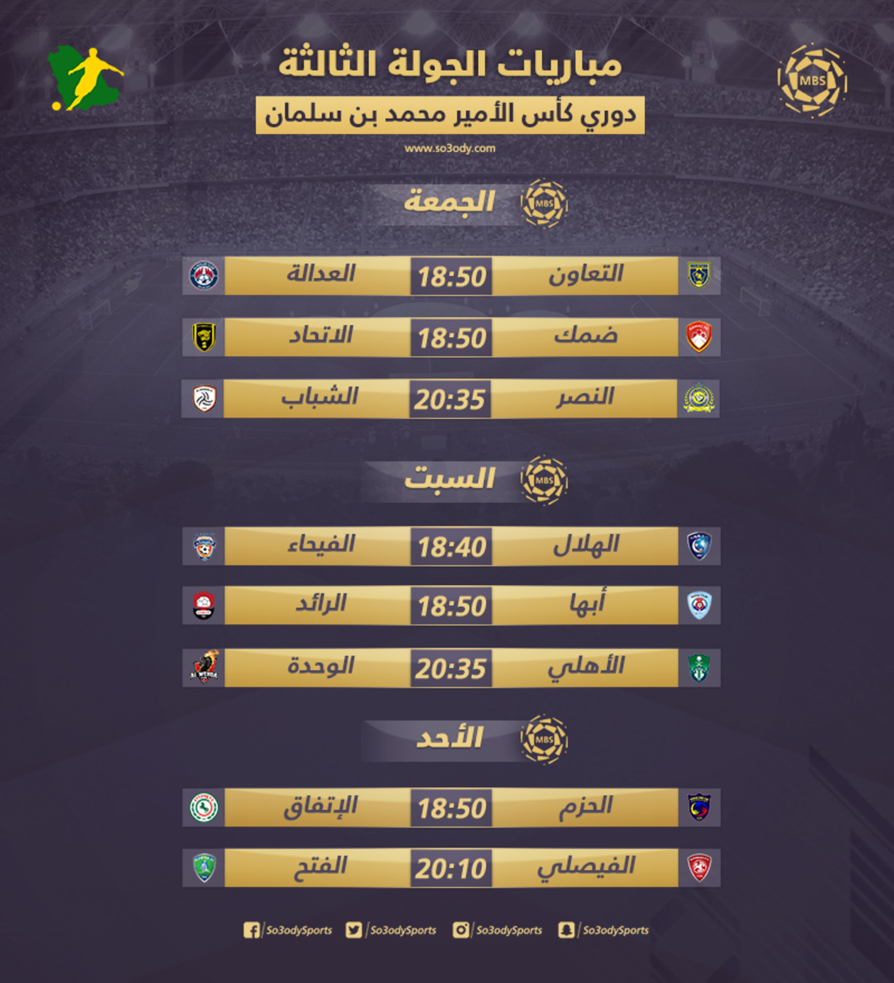 تفصلنا ساعات قليلة، ويرفع الستار على انطلاق مباريات الجولة الثالثة من منافسات دوري كأس الأمير محمد بن سلمان.