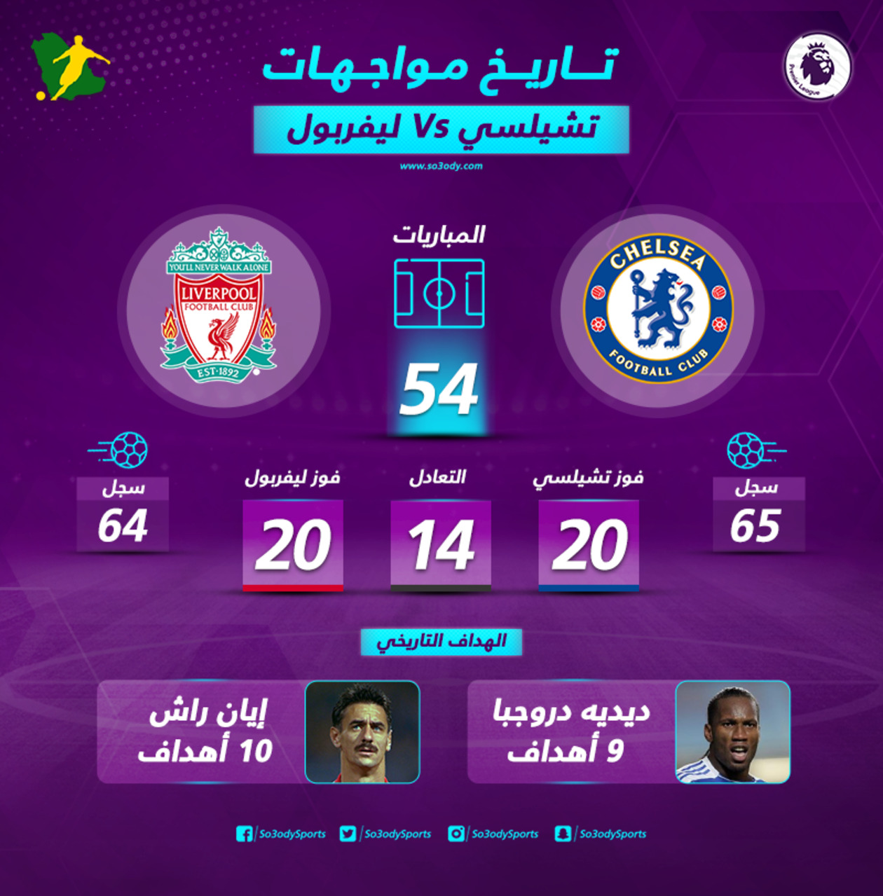 يصطدم تشيلسي بنظيره المتصدر ليفربول في قمة الجولة السادسة من البريميرليج على ملعب "ستامفورد بريدج".