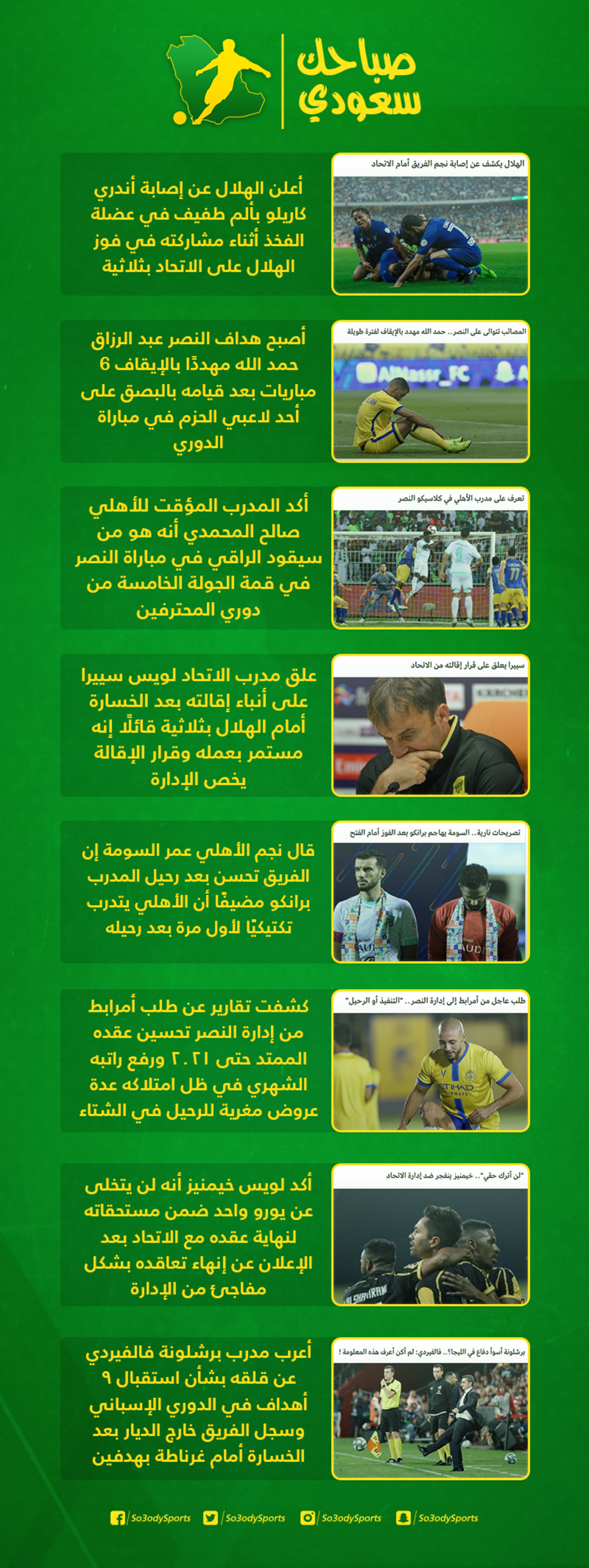شهدت الساحة الرياضية المحلية والعالمية، خلال الـ24 ساعة المنقضية، عددًا من الأخبار التي حرص "سعودي سبورت" على الاهتمام بها، وتقديمها لمتابعيه، من أجل إلمامهم بالأحداث أول بأول.