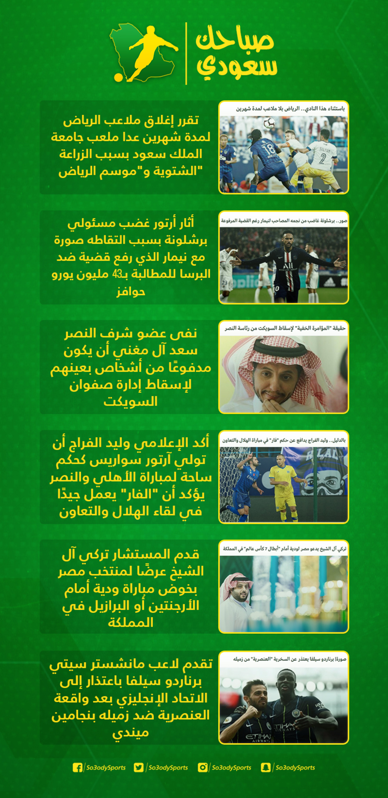 - تقرر إغلاق ملاعب الرياض لمدة شهرين عدا ملعب جامعة الملك سعود بسبب الزراعة الشتوية و"موسم الرياض".