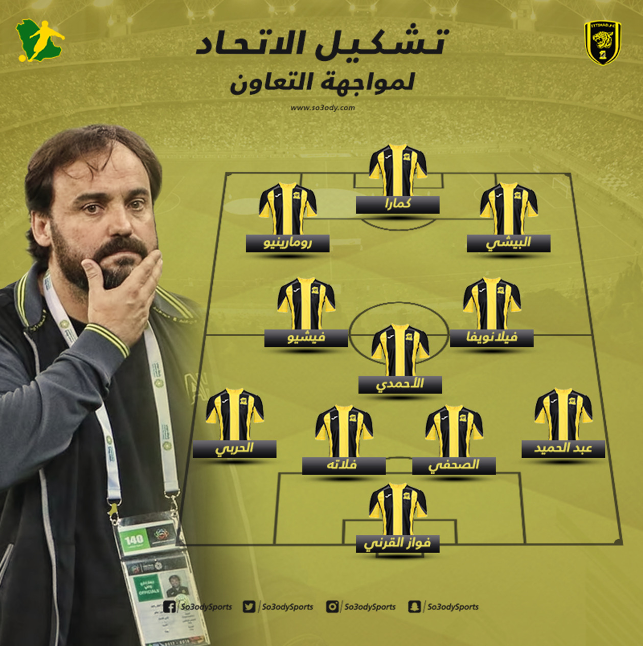 - وفيما يلي تشكيل الاتحاد أمام التعاون..