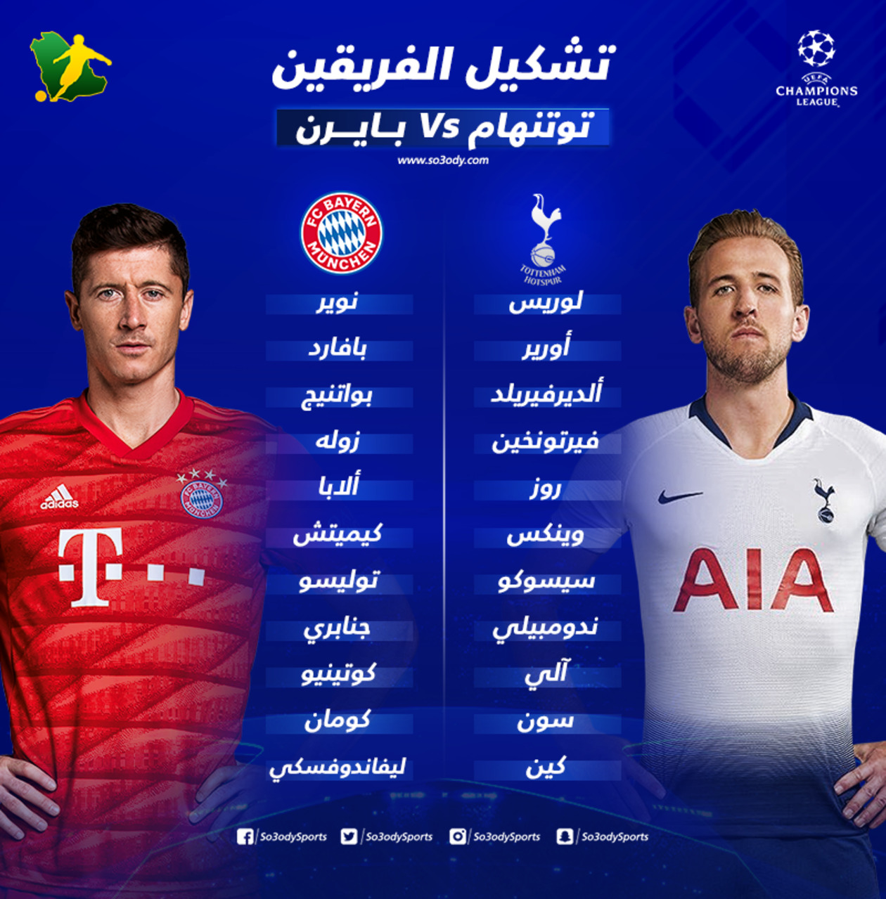 أعلن ماوريسيو بوكيتينو المدير الفني لتوتنهام، تشكيل فريقه الأساسي الذي سيواجه ضيفه بايرن ميونخ الألماني، في إطار منافسات الجولة الثانية لدور المجموعات بدوري أبطال أوروبا.