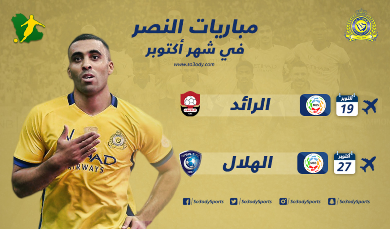 ويخوض النصر مباراتين في شهر أكتوبر، خلال مسابقة دوري كأس الأمير محمد بن سلمان للمحترفين.