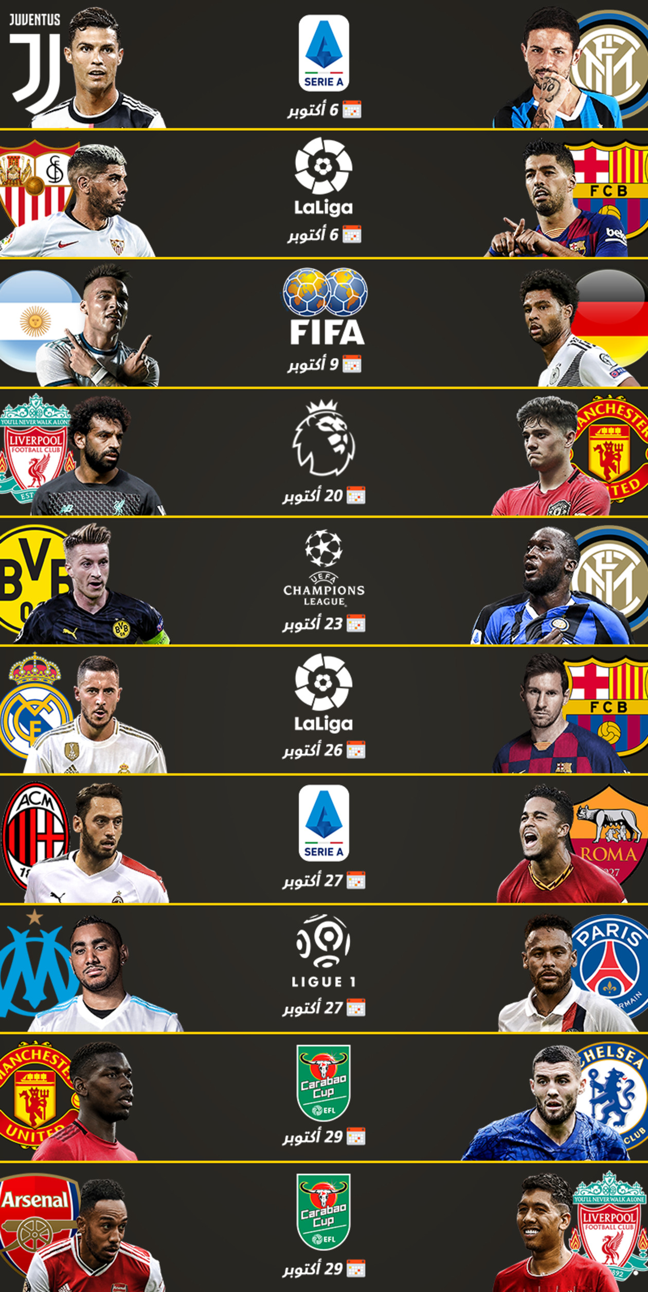 أهم مباريات شهر أكتوبر: