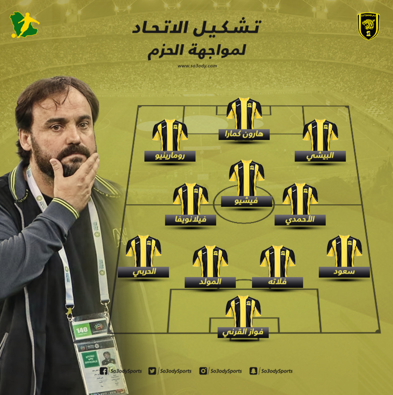 الهجوم: عبد العزيز البيشي، رومارينهو، هارون كمارا