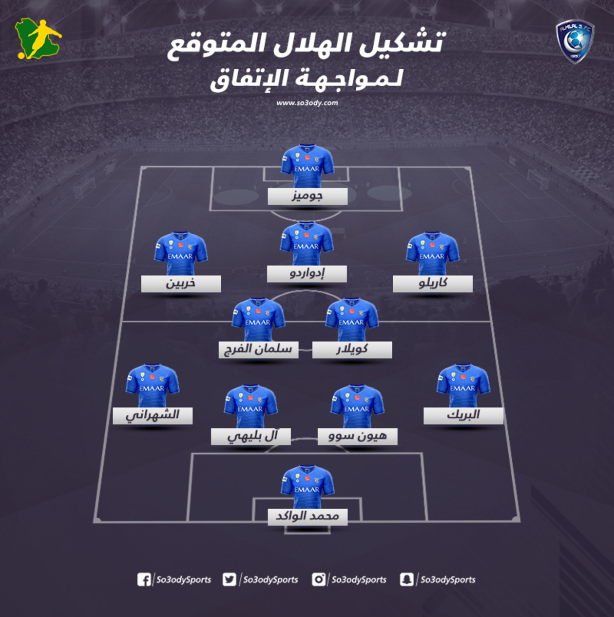 - وفيما يلي تشكيل الهلال المتوقع أمام الاتفاق..