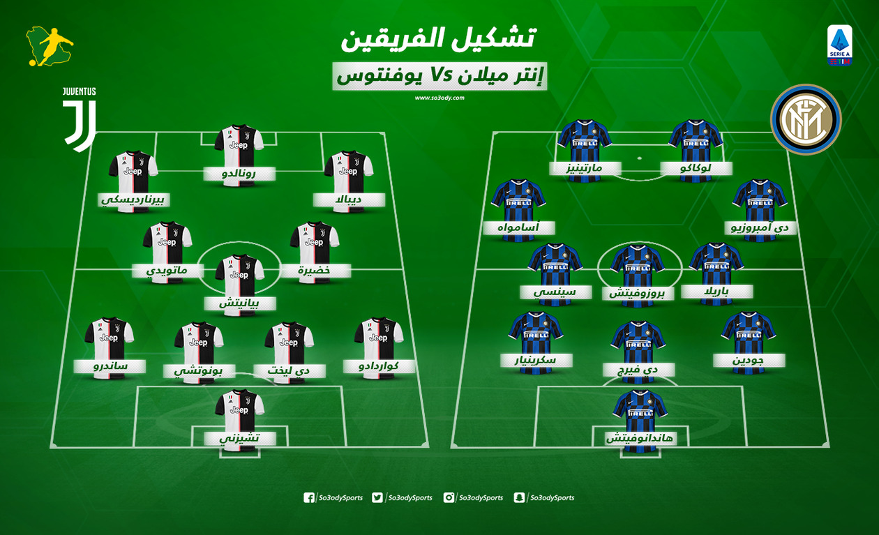 يستضيف المتصدر إنتر ميلان، وصيفه يوفنتوس، على ملعب جوزيبي مياتزا، بعد قليل، في قمة منافسات الجولة السابعة من الدوري الإيطالي.