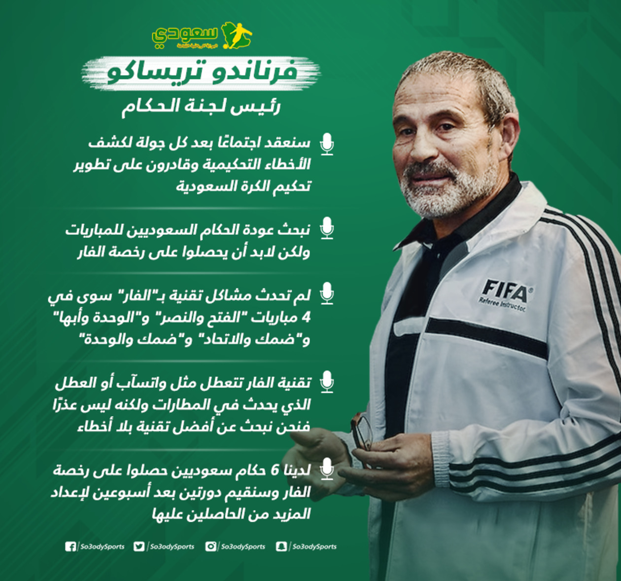 - لدينا 6 حكام سعوديين حصلوا على رخصة الفار وسنقيم دورتين بعد أسبوعين لإعداد المزيد من الحاصلين عليها