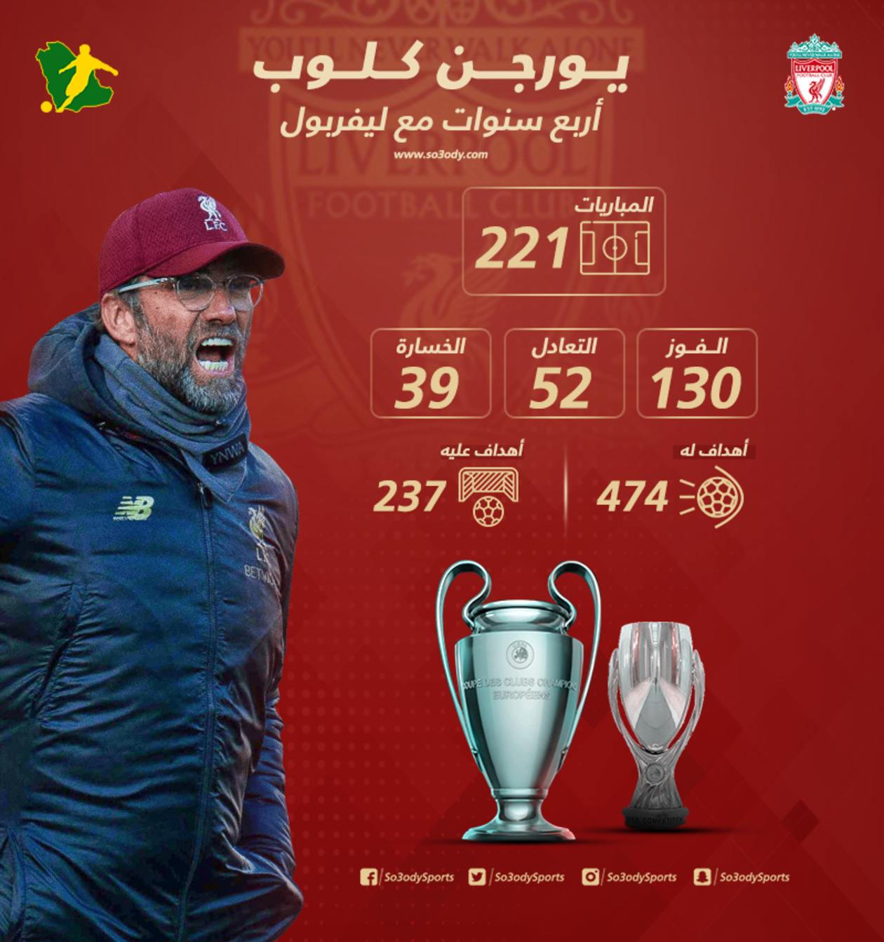 يصادف اليوم 8 أكتوبر مرور 4 سنوات على تعيين الألماني يورجن كلوب مدرباً لفريق ليفربول.
