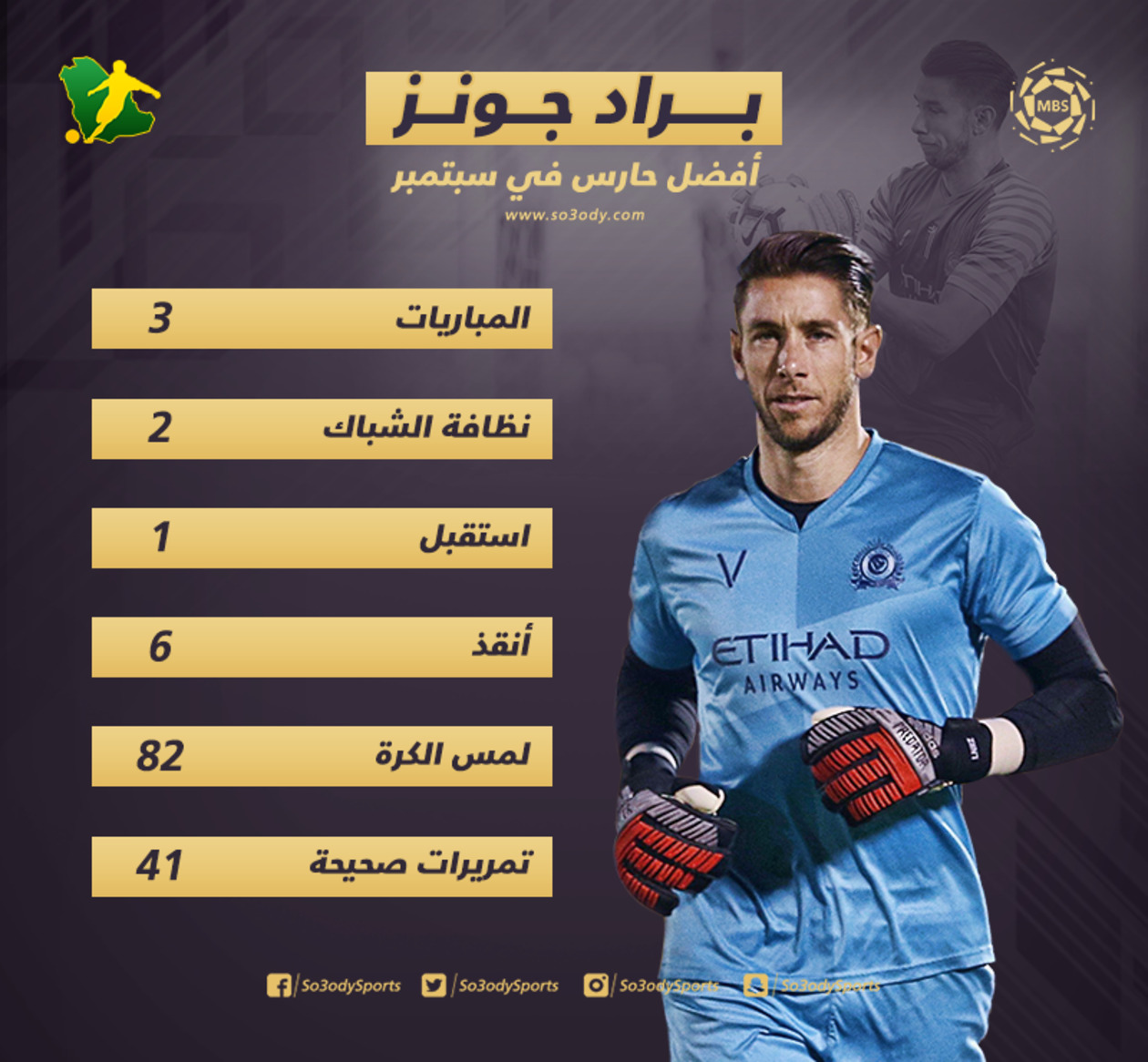 ويستعرض "سعودي سبورت" أرقام حارس النصر براد جونز في 3 مباريات على مدار شهر سبتمبر.
