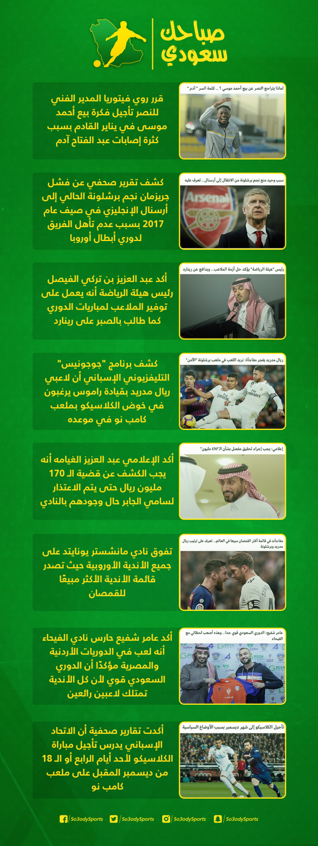 شهدت الساحة الرياضية المحلية والعالمية، خلال الـ24 ساعة المنقضية، عددًا من الأخبار التي حرص "سعودي سبورت" على الاهتمام بها، وتقديمها لمتابعيه، من أجل إلمامهم بالأحداث أول بأول.