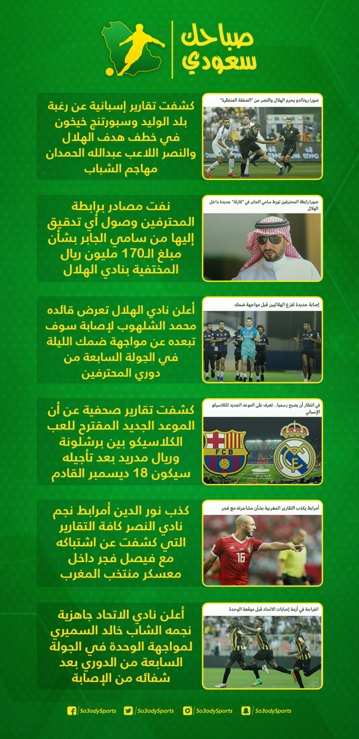 شهدت الساحة الرياضية المحلية والعالمية، خلال الـ24 ساعة المنقضية، عددًا من الأخبار التي حرص "سعودي سبورت" على الاهتمام بها، وتقديمها لمتابعيه، من أجل إلمامهم بالأحداث أول بأول.