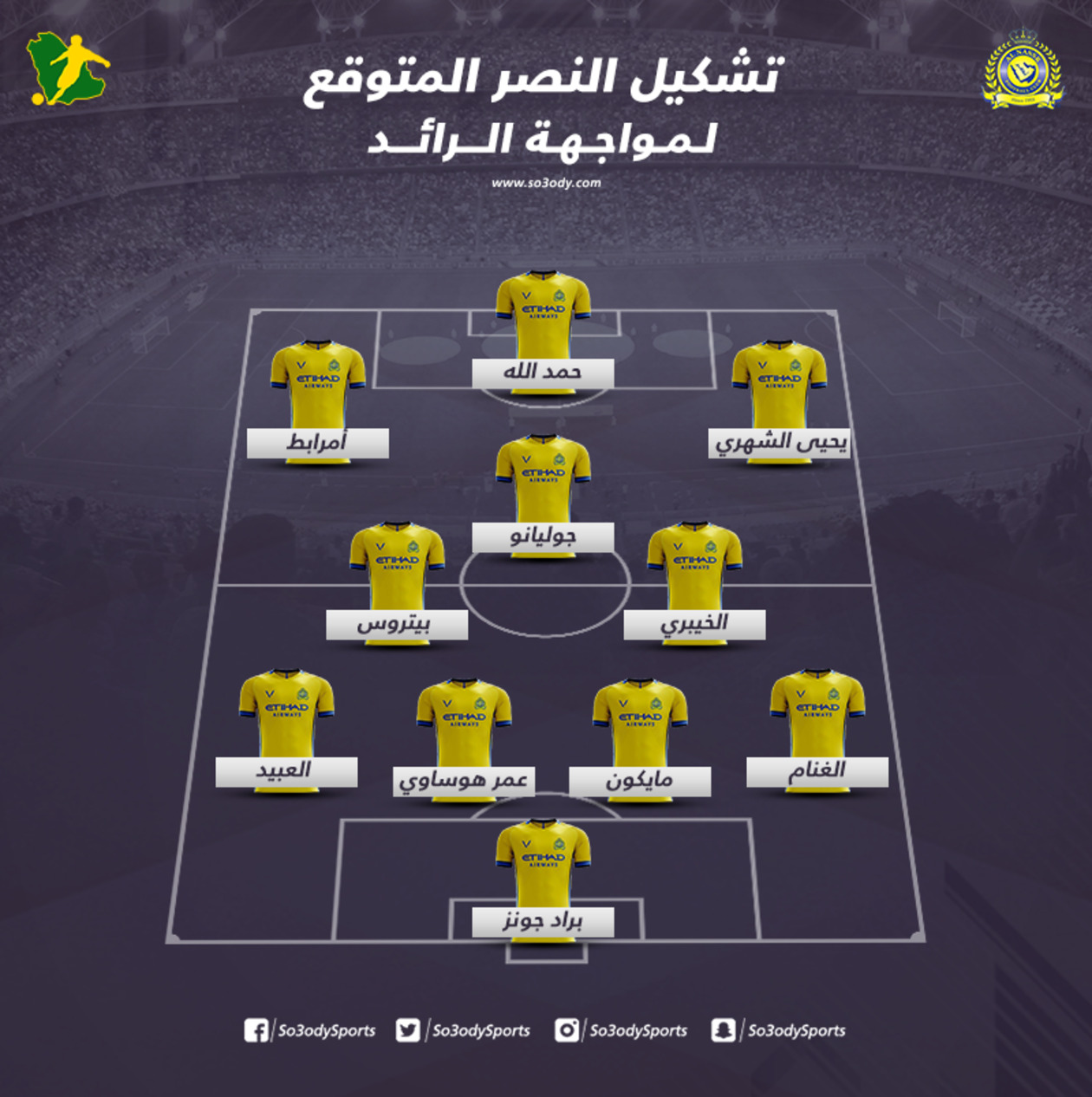 - وفيما يلي التشكيل المتوقع للنصر أمام الرائد..