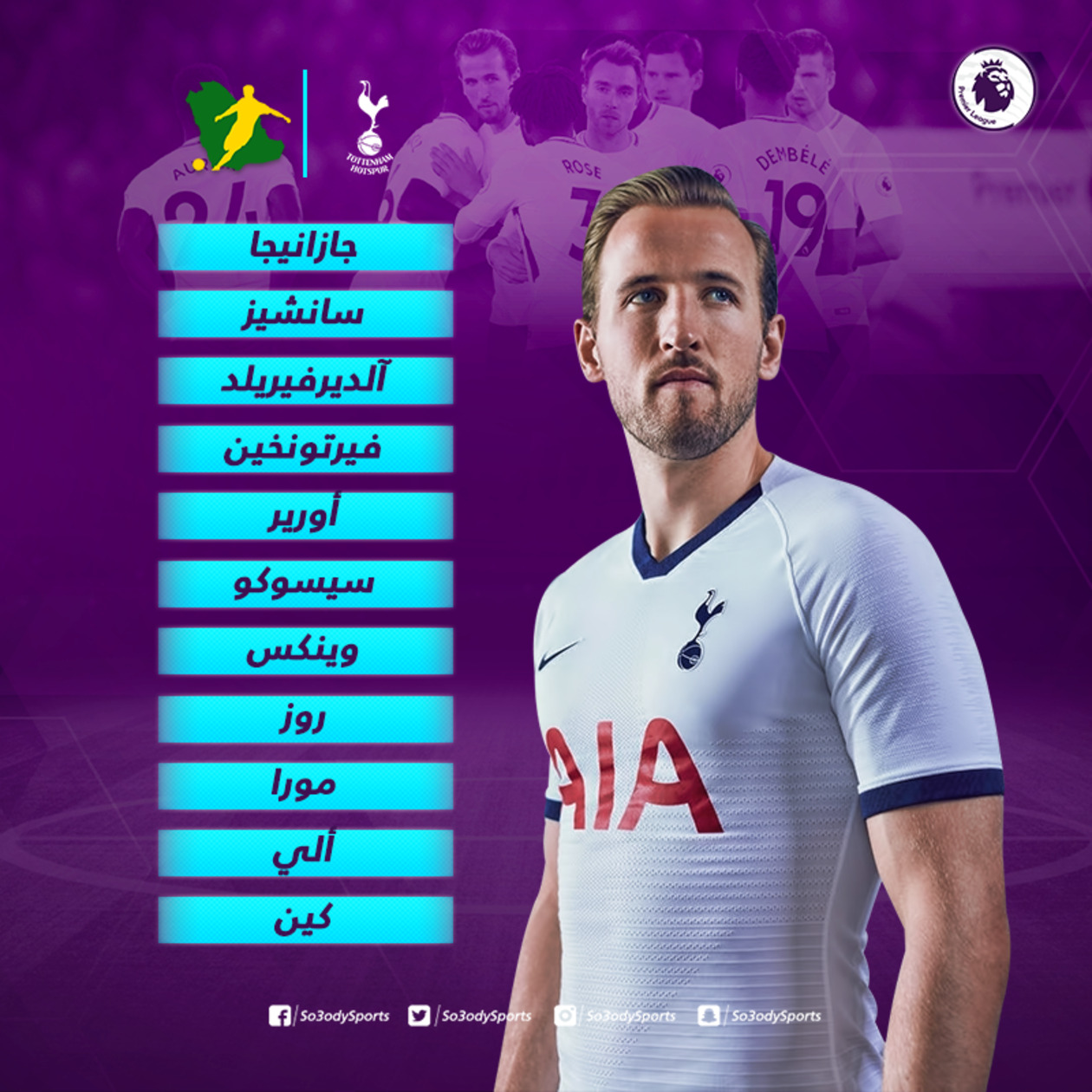 أعلن ماوريسيو بوكيتينو المدير الفني لتوتنهام، تشكيل فريقه الأساسي الذي سيواجه ضيفه واتفورد، على ملعب وايت هارت لين الجديد، ضمن منافسات الجولة التاسعة من الدوري الإنجليزي "البريميرليج".