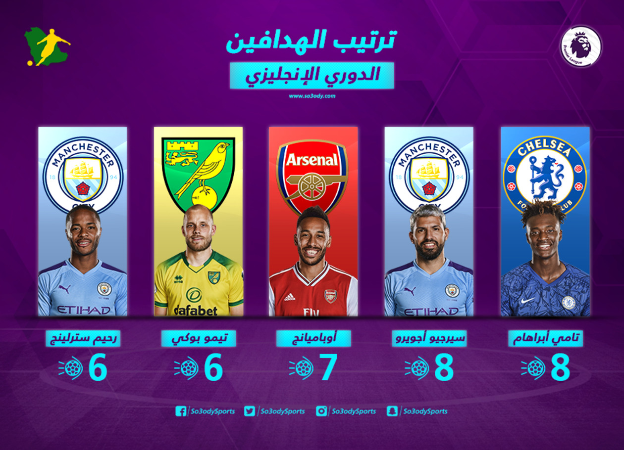 انتهت منافسات الجولة التاسعة من الدوري الإنجليزي، اليوم الإثنين، بتصدر تامي إبراهام مهاجم تشيلسي، جدول ترتيب الهدافين، رفقة نجم مانشستر سيتي سيرجيو أجويرو.