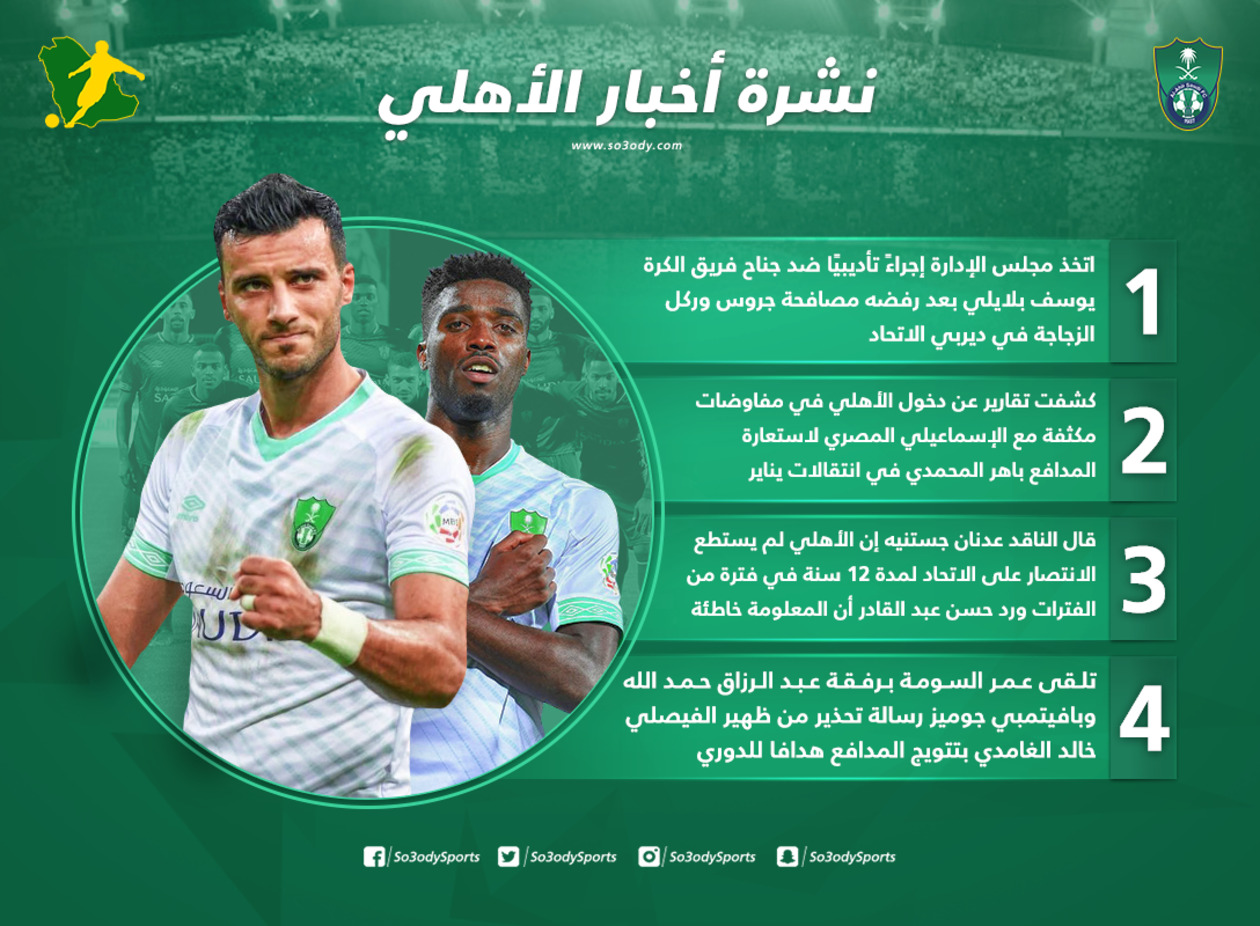 - اتخذ مجلس الإدارة إجراءً تأديبيًا ضد جناح فريق الكرة يوسف بلايلي بعد رفضه مصافحة جروس وركل الزجاجة في ديربي الاتحاد