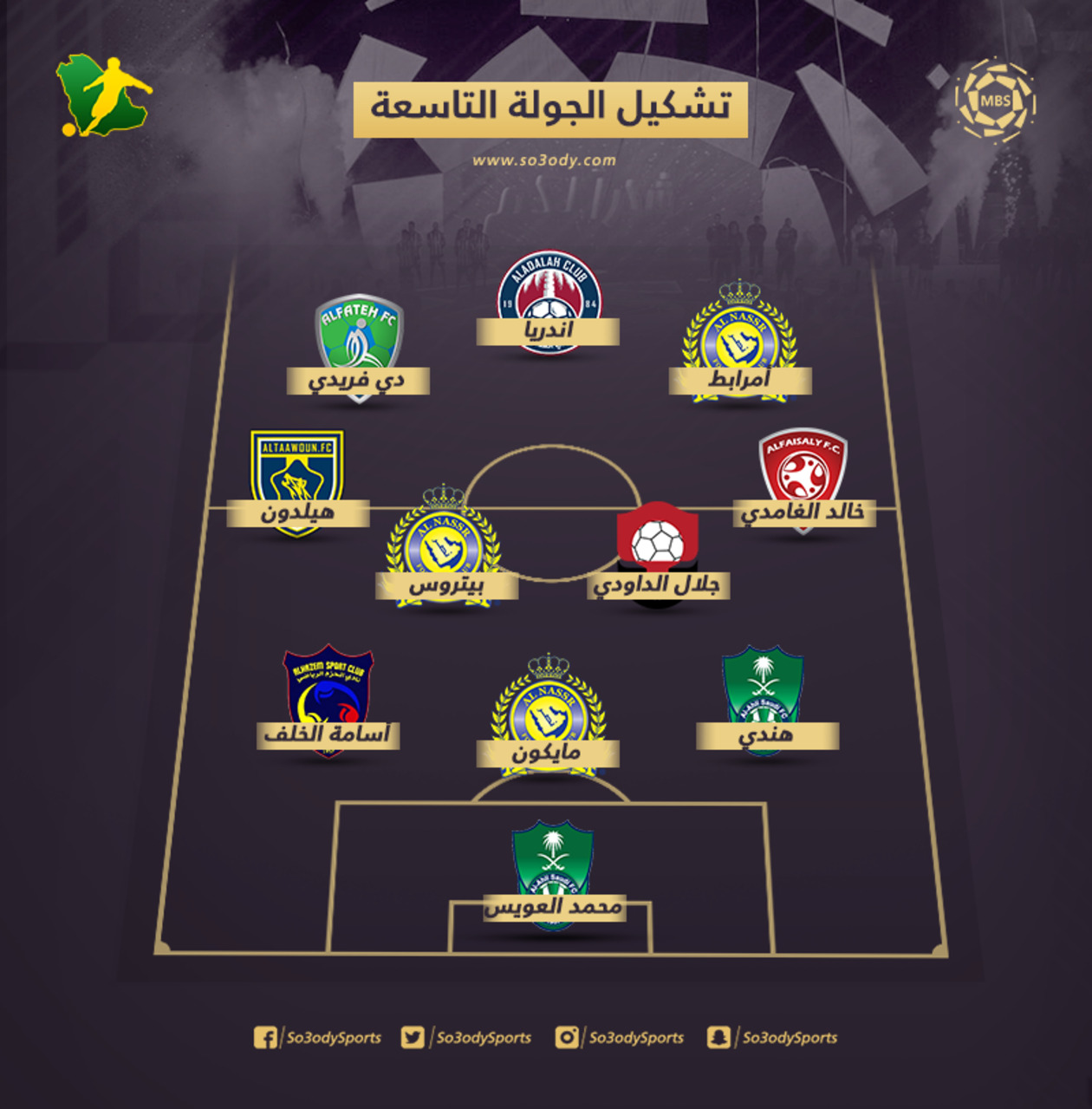 ويستعرض "سعودي سبورت" تشكيل الجولة 9 من دوري المحترفين، والذي جاء كالآتي..
