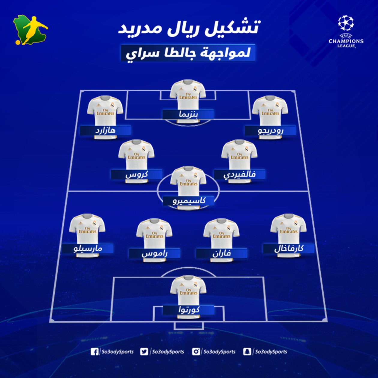 خط الهجوم: رودريجو، بنزيما، هازارد.