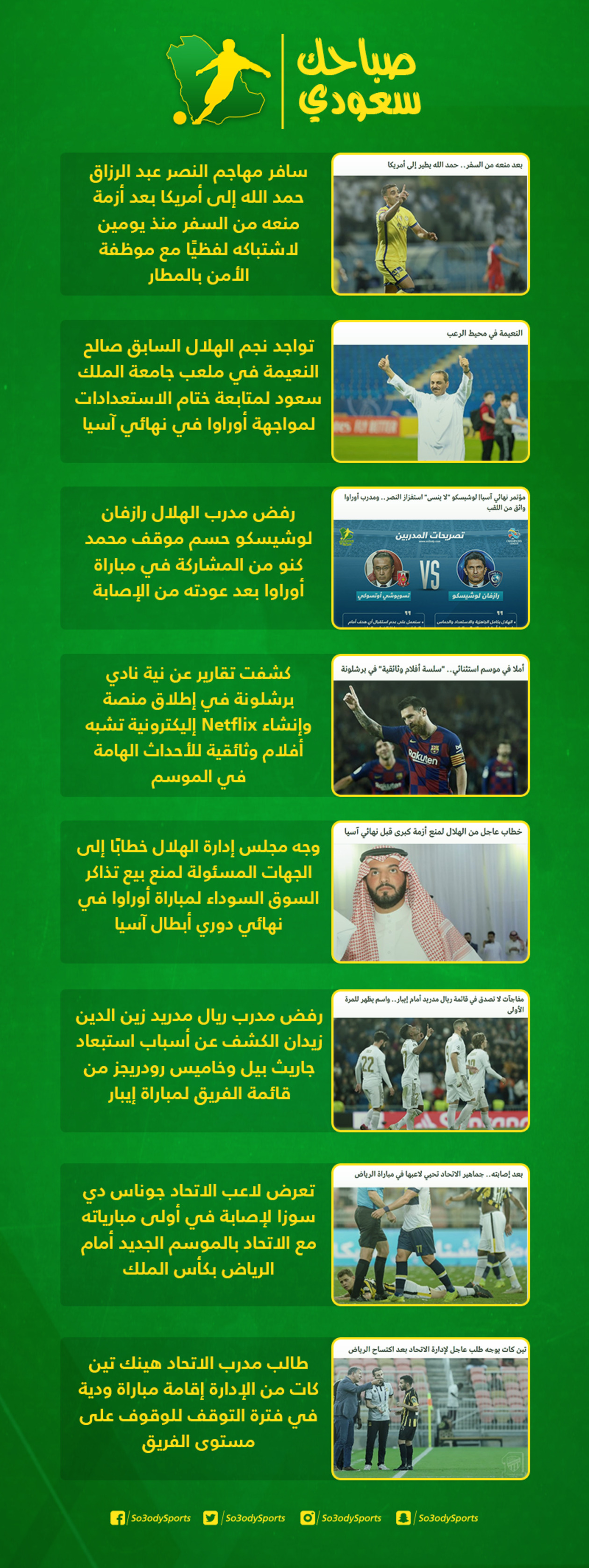 شهدت الساحة الرياضية المحلية والعالمية، خلال الـ24 ساعة المنقضية، عددًا من الأخبار التي حرص "سعودي سبورت" على الاهتمام بها، وتقديمها لمتابعيه، من أجل إلمامهم بالأحداث أول بأول.
