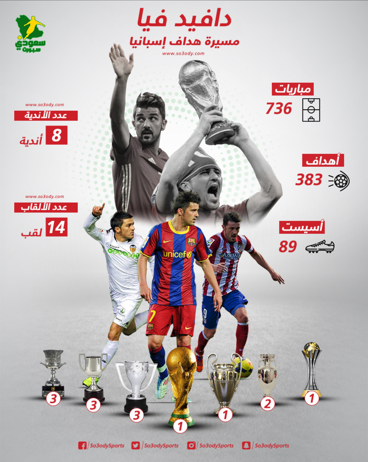 مسيرة فيا الحافلة مرت على 8 أندية أبرزهم برشلونة، أتلتيكو مدريد وفالنسيا، وحقق 14 لقباً أبرزهم لقب كأس العالم 2010 مع إسبانيا بجانب لقبين لكأس الأمم الأوروبية بجانب العديد من البطولات مع الأندية وأبرزهم دوري أبطال أوروبا مع برشلونة و3 ألقاب للدوري الإسباني، 2 مع البرسا و1 مع أتلتيكو.