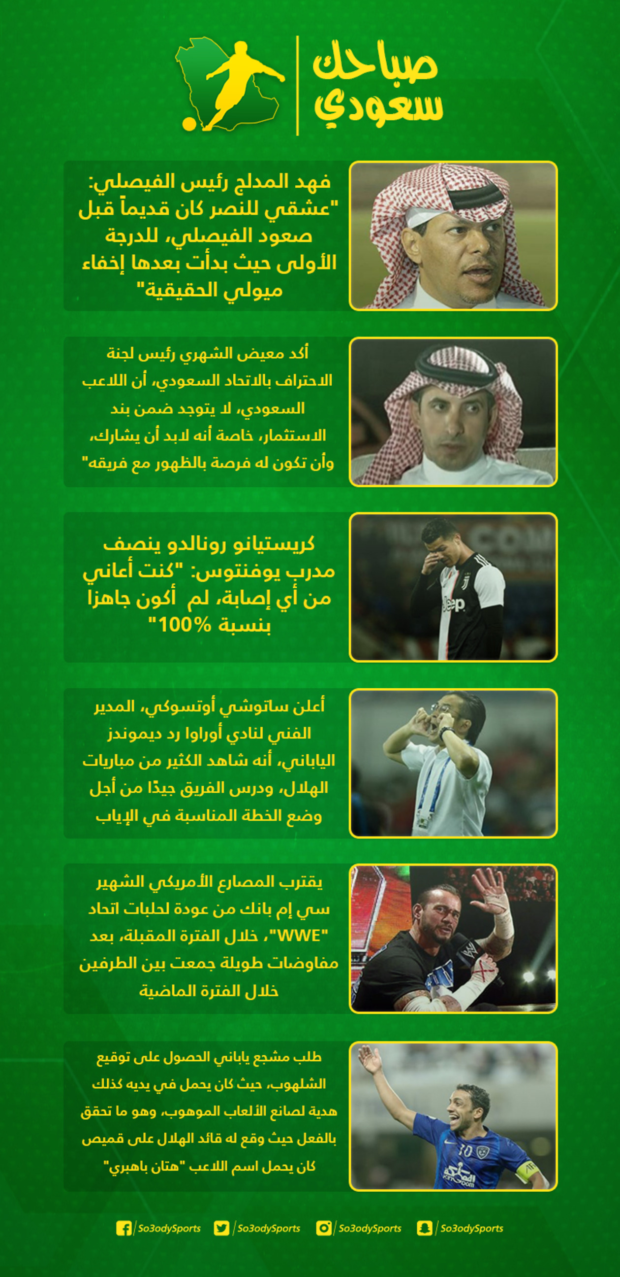 صباحك سعودي| أوراوا يتوعد الهلال ورونالدو ينصف مدرب يوفنتوس وعودة تاريخية لنجم "WWE"