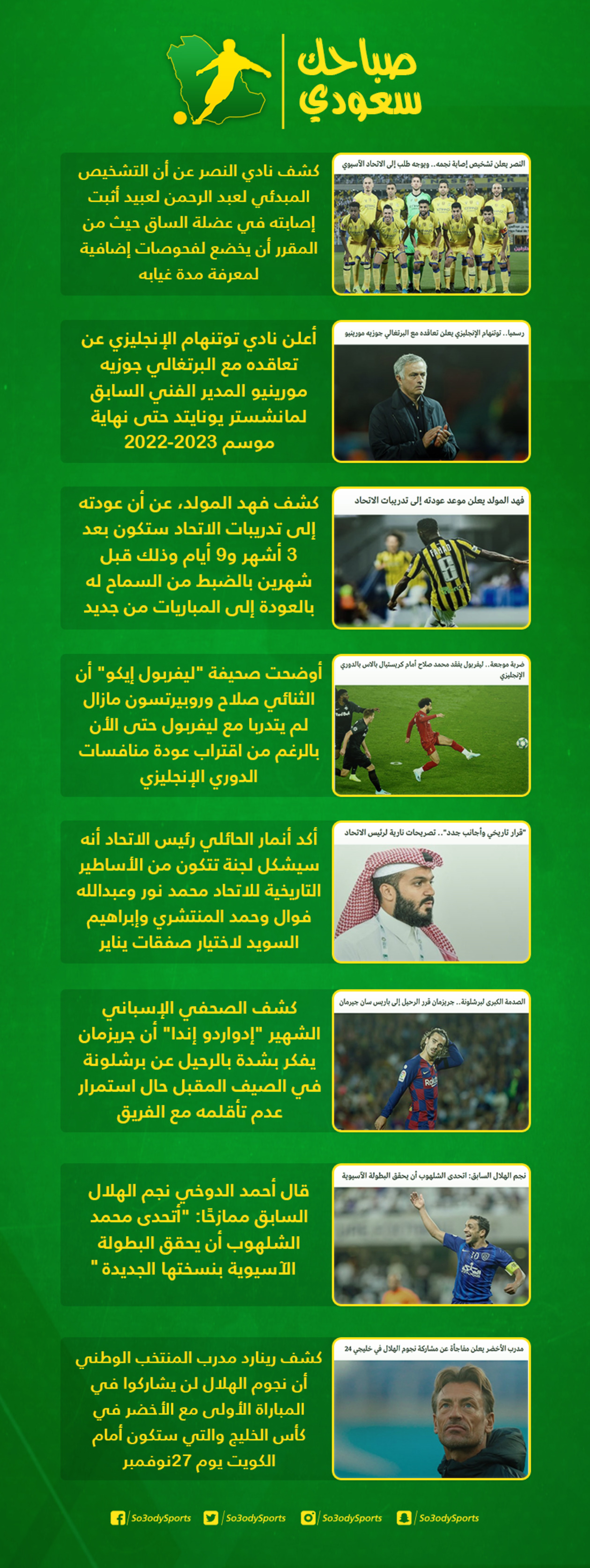 شهدت الساحة الرياضية المحلية والعالمية، خلال الـ24 ساعة المنقضية، عددًا من الأخبار التي حرص "سعودي سبورت" على الاهتمام بها، وتقديمها لمتابعيه، من أجل إلمامهم بالأحداث أول بأول.