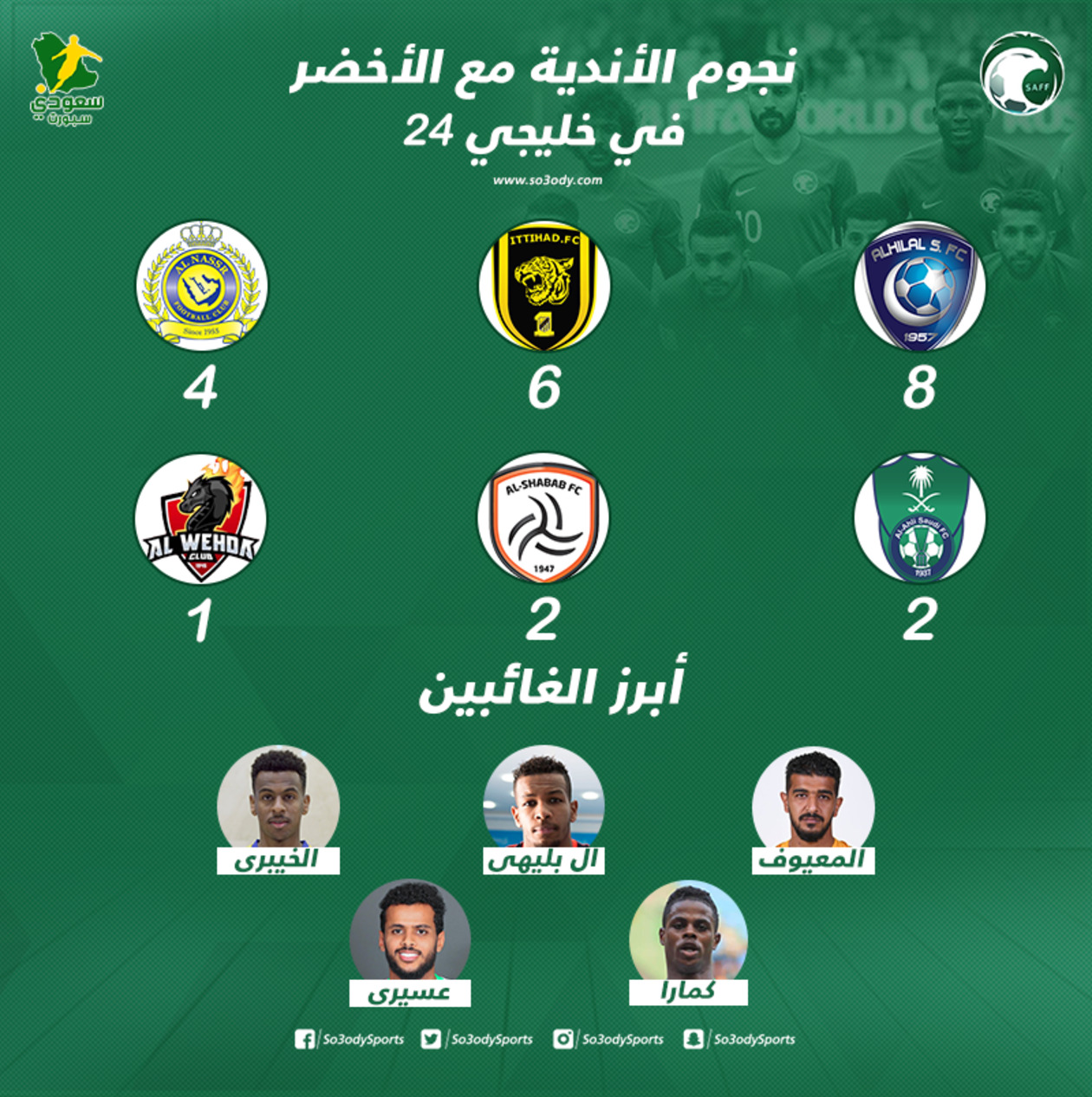 - شهدت قائمة المنتخب السعودي تواجد 6 لاعبين من نادي الاتحاد، الذي ينافس على مراكز الهبوط، في المقابل تواجد 4 لاعبين فقط من نادي النصر الذي ينافس على صدارة ترتيب دوري المحترفين.