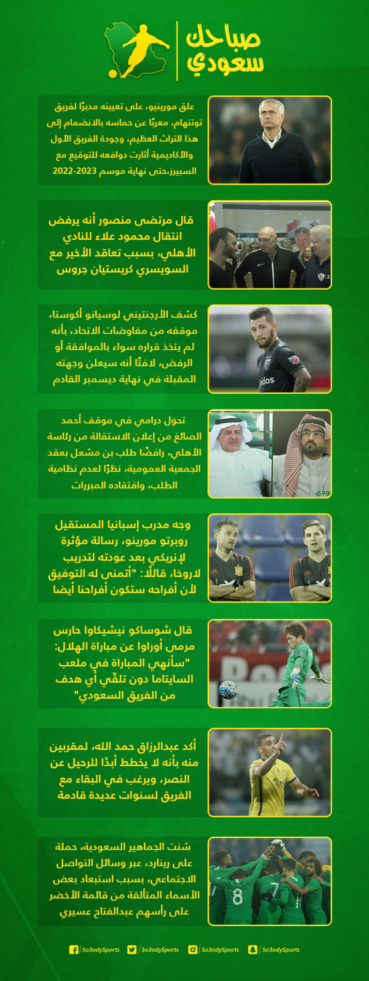 صباحك سعودي| رينارد يفاجئ نجوم الهلال.. وتوتنهام يتعاقد مع مورينيو