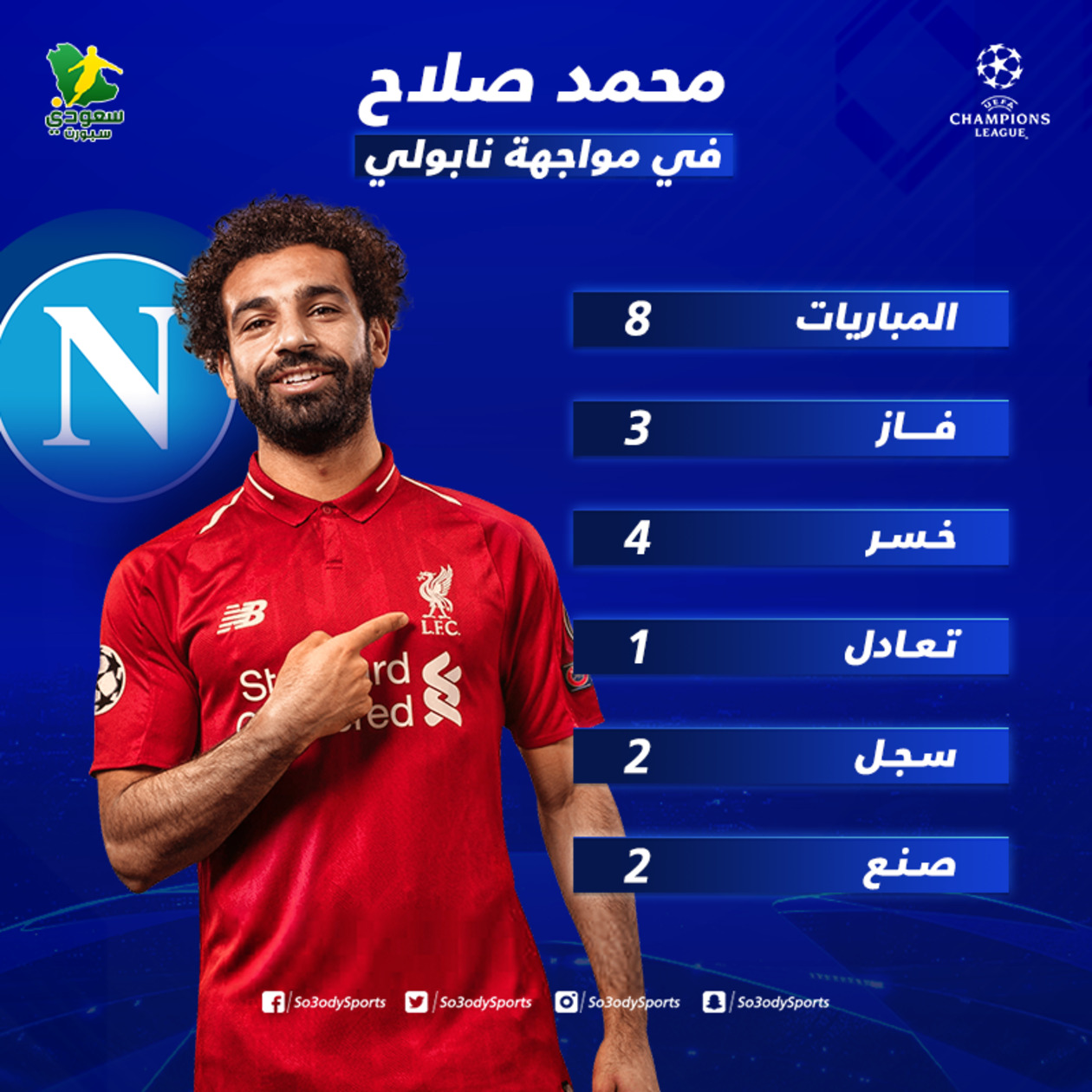 وستكون مواجهة اليوم هي التاسعة لنجم الريدز محمد صلاح في مواجهة نابولي، منهم 3 بقميص فريقه الحالي والباقي عندما كان لاعبا في الدوري الإيطالي مع فيورنتينا وروما.