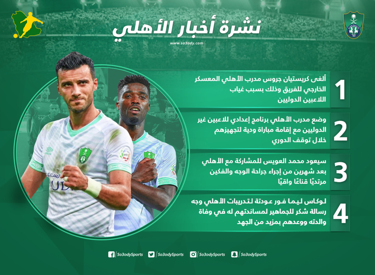 ويستعرض "سعودي سبورت"، أهم أخبار النادي الأهلي، في الـ24 ساعة الأخيرة..