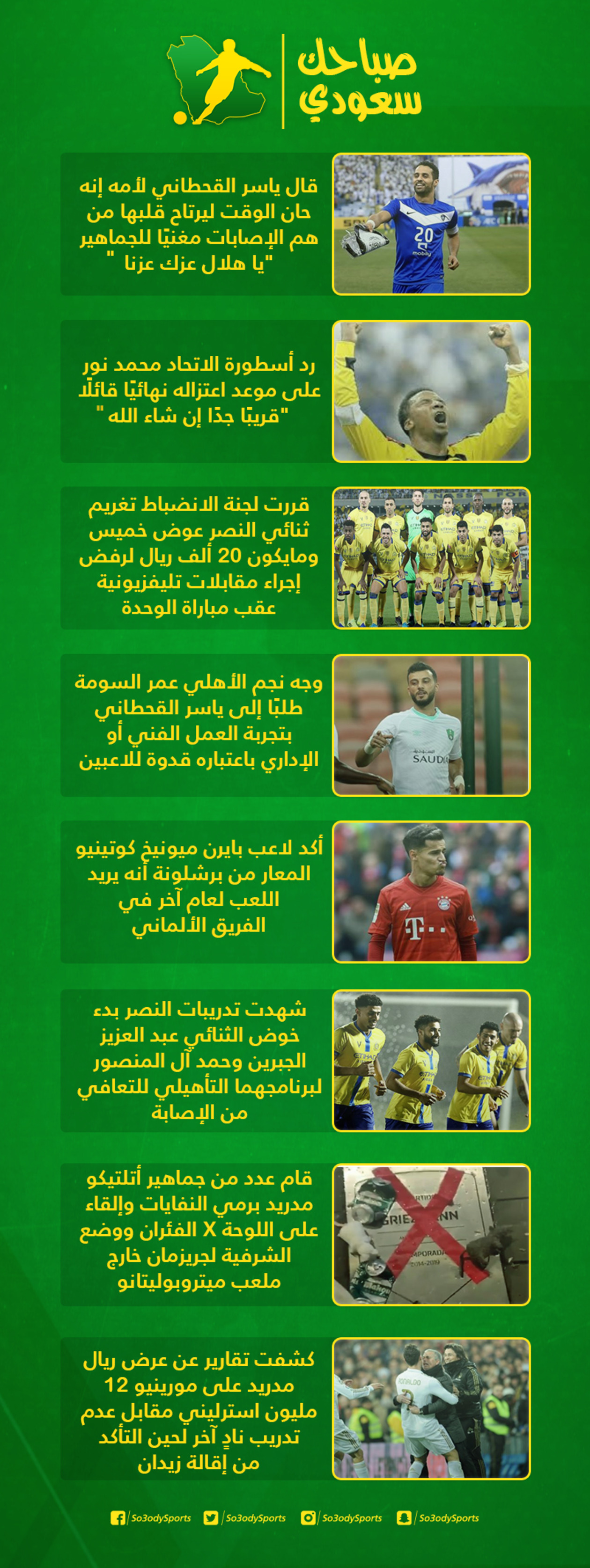 صباحك سعودي| نصيحة للقحطاني وموعد اعتزال نور وخيانة عظمى لزيدان