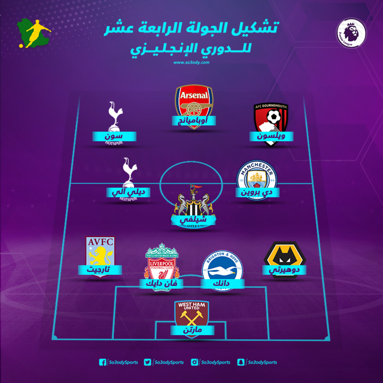 الهجوم: ويلسون (بورنموث)، أوباميانج (أرسنال)، سون (توتنهام)