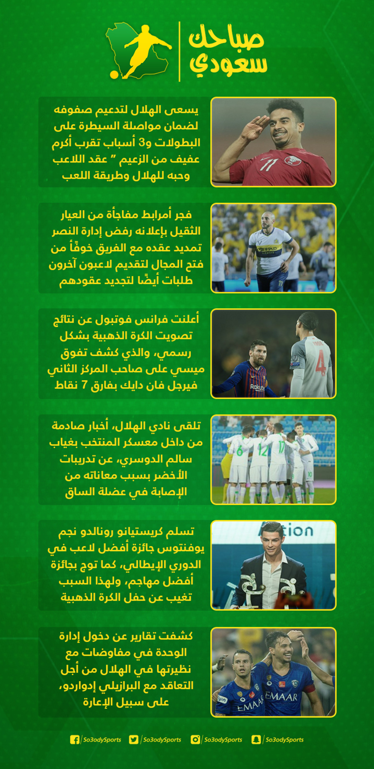 صباحك سعودي| ميسي يفضل جائزتين على "البالون دور" والنصر يخترق الهلال