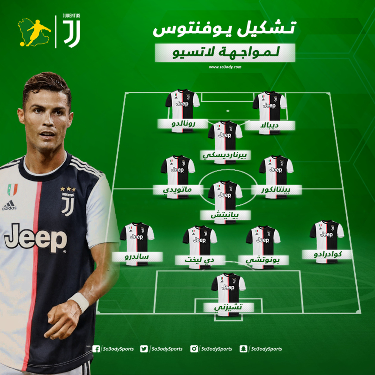 ويعتمد مدرب يوفنتوس ماوريسيو ساري على ثنائية هجومية مكونة من باولو ديبالا وكريستيانو رونالدو.