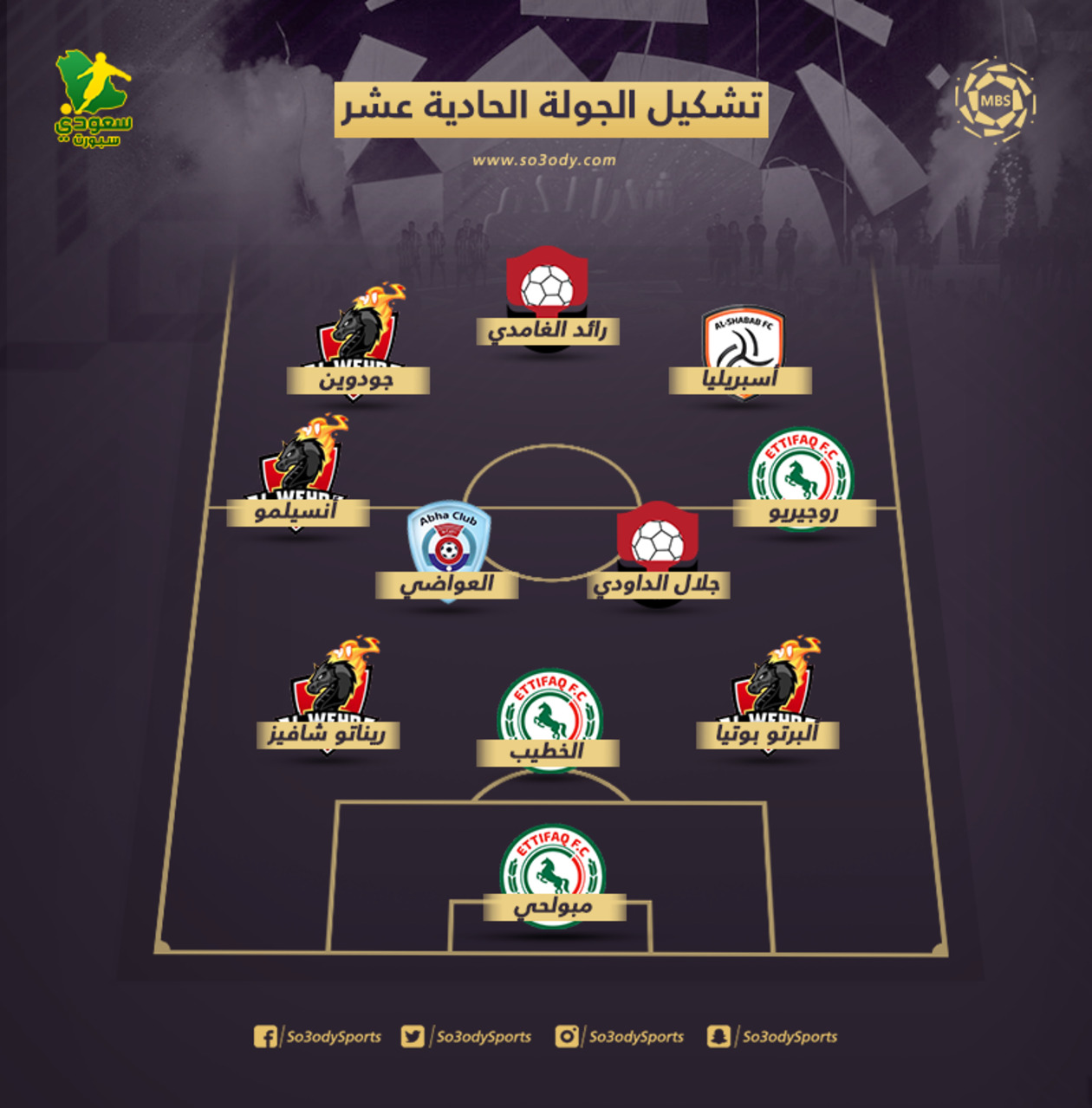 الهجوم: كريج جودوين (الوحدة)، رائد الغامدي (الرائد)، دانيلو أسبريليا (الشباب)
