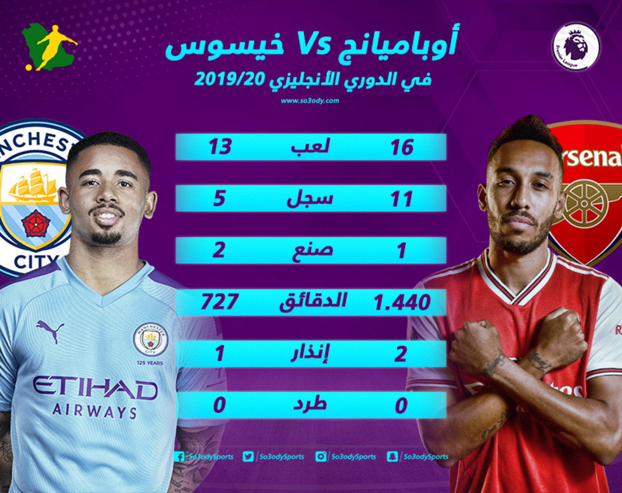 يذكر أن أوباميانج لم يسجل أهداف من قبل ضد مانشستر سيتي، بينما سجل جيسوس هدف وحيد ضد أرسنال.