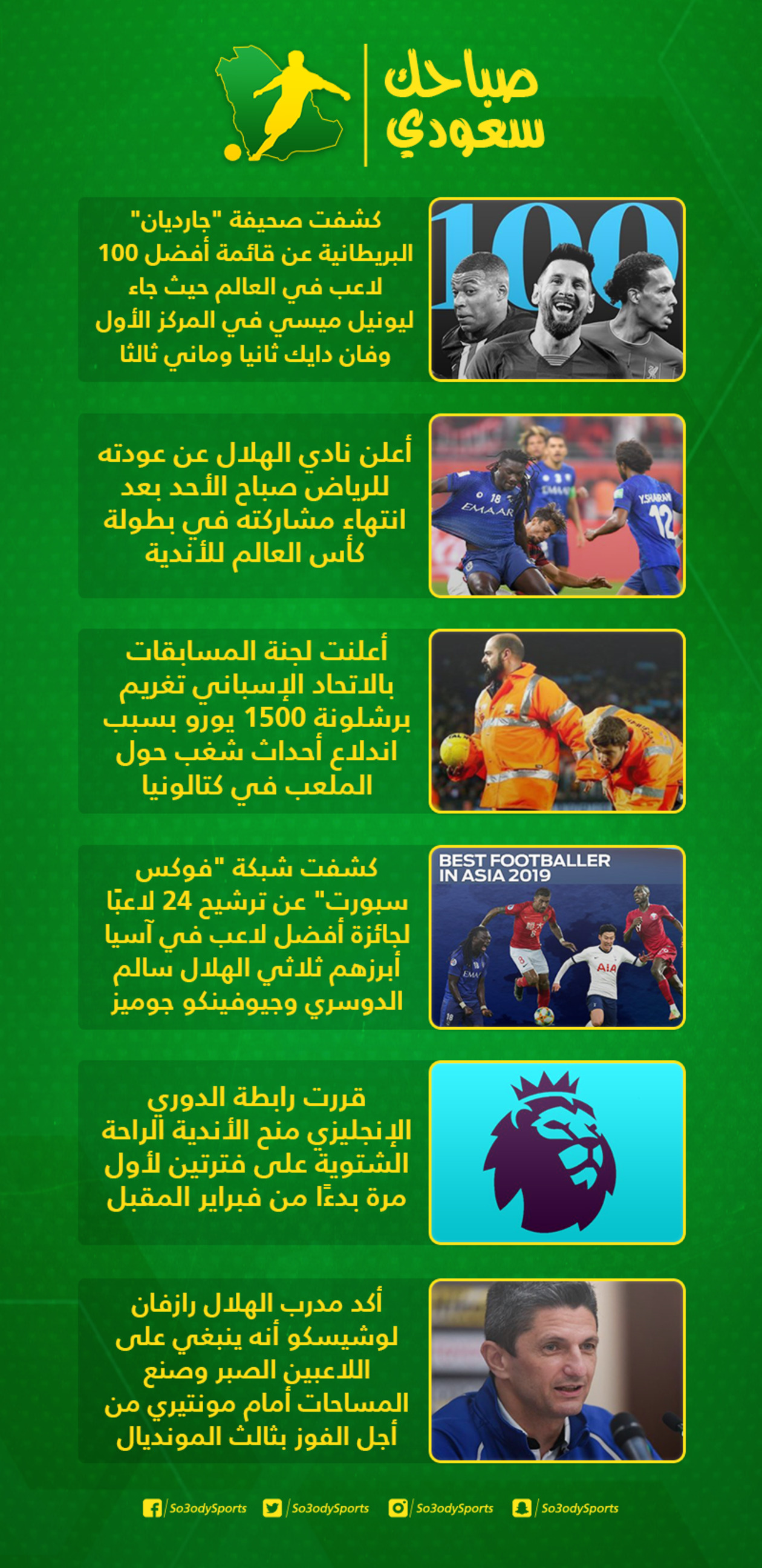 شهدت الساحة الرياضية المحلية والعالمية، خلال الـ24 ساعة المنقضية، عددًا من الأخبار التي حرص "سعودي سبورت" على الاهتمام بها، وتقديمها لمتابعيه، من أجل إلمامهم بالأحداث أول بأول.