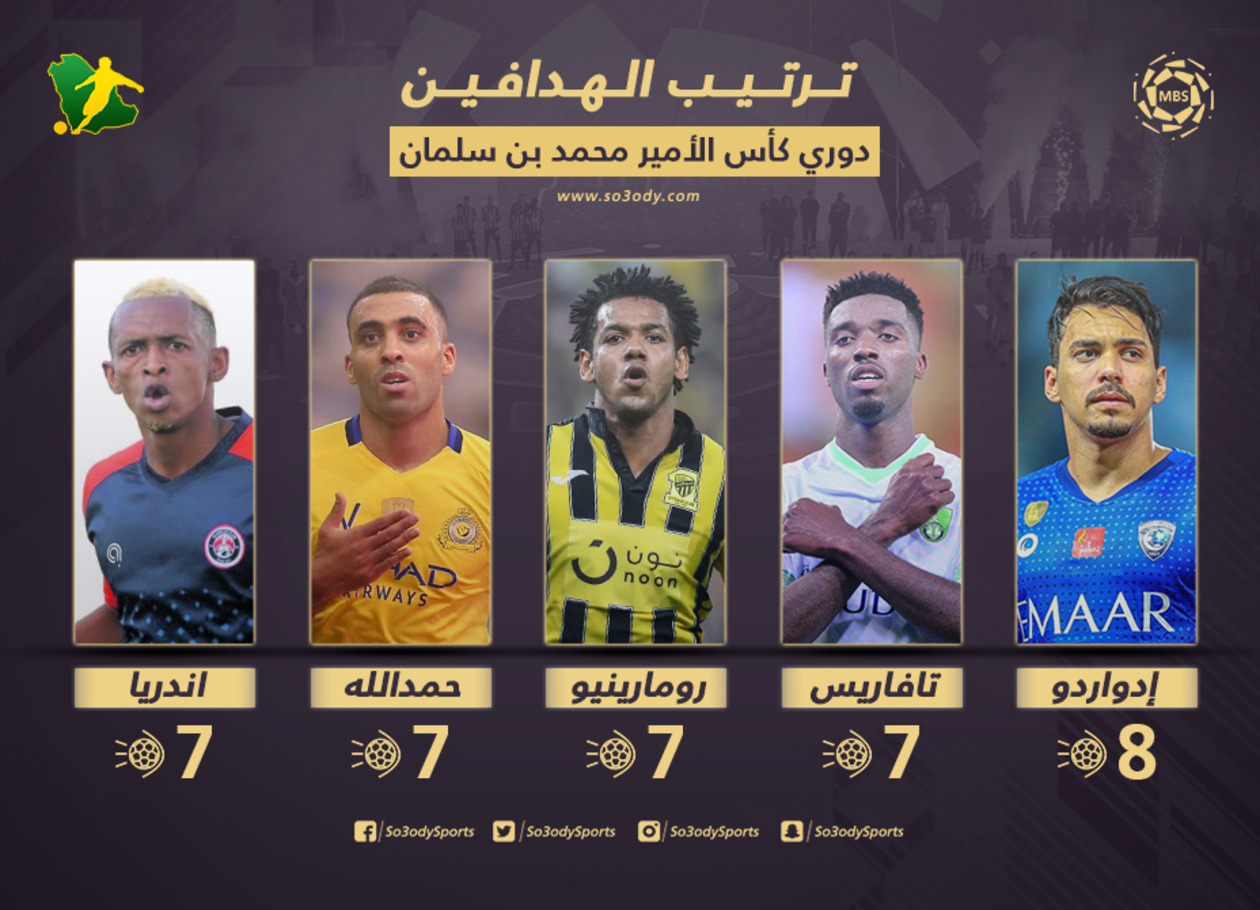 ويظل لاعب الهلال كارلوس إدواردو في قمة الهدافين، بتسجيل 8 أهداف.