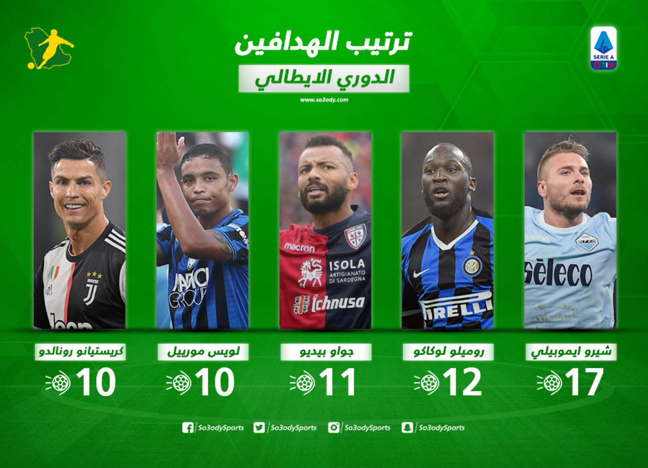 انتهت منافسات الجولة الـ 17 من عمر الدوري الإيطالي "الكالتشيو"، بتصدر شير إيموبيلي قائمة هدافي المسابقة برصيد 17 هدفا.