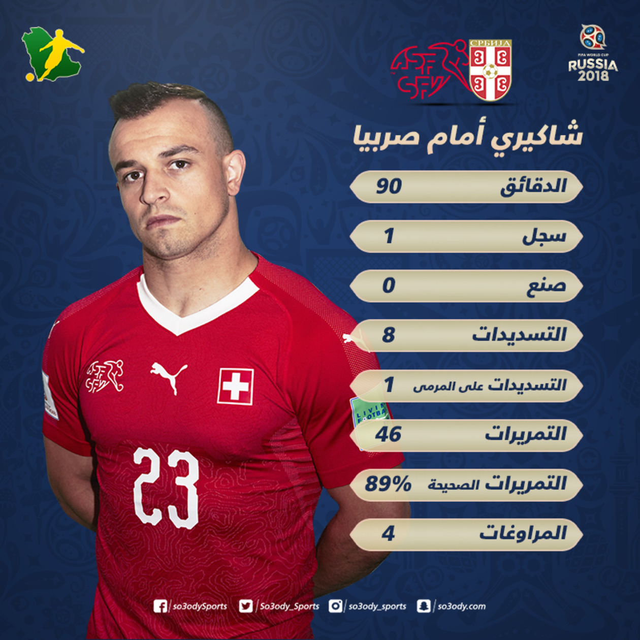 ويستعرض "سعودي"، فيما يلي الأرقام التي توضح سر تألق شاكيري في مواجهة صربيا: