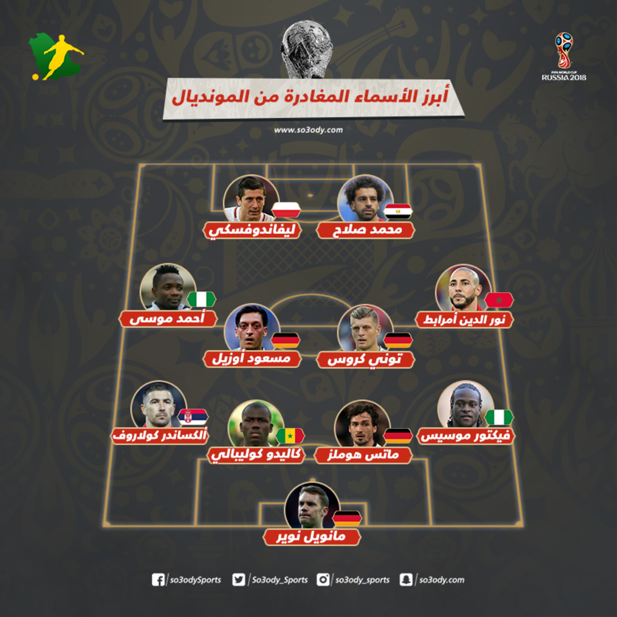 وفي الانفوجرافيك التالي نقدم أبرز الأسماء المغادرة لكأس العالم نسخة روسيا 2018 من دور المجموعات (بعيدًا عن أداءهم):