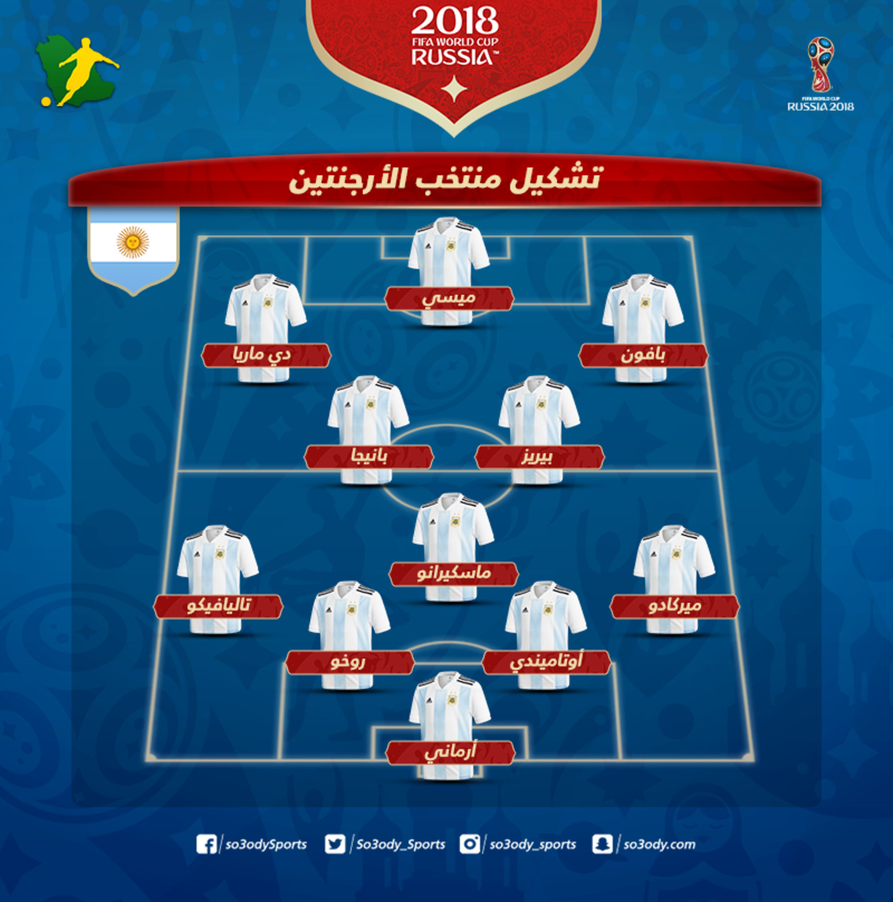 أعلن خورخي سامباولي، المدير الفني لمنتخب الأرجنتين، عن تشكيل فريقه لمواجهة فرنسا التي ستقامك بعد قليل على ملعب "كازان أرينا" في افتتاح مباريا دور الـ16 من كأس العالم.