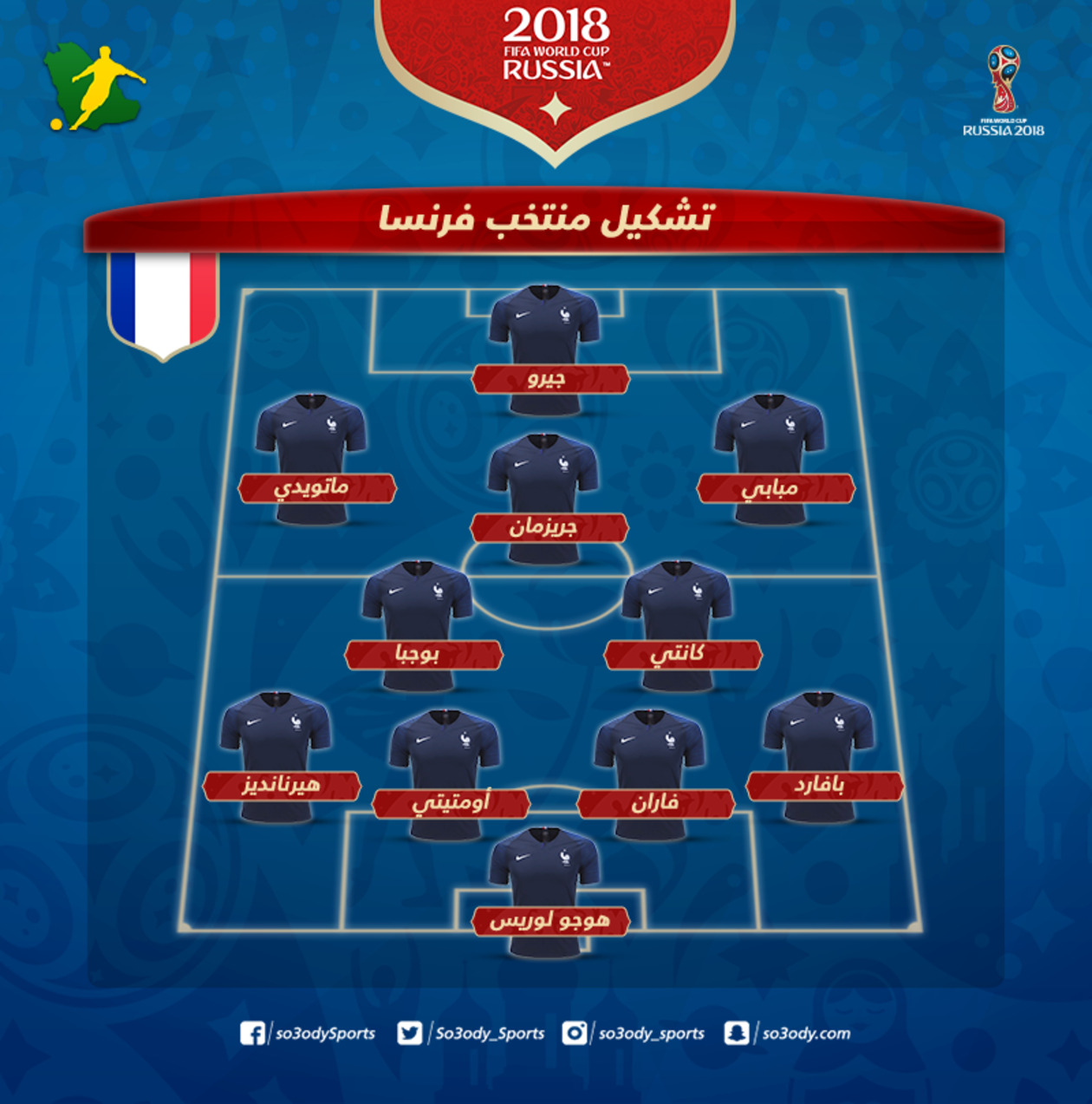 وجاء تشكيل منتخب فرنسا كما يلي: