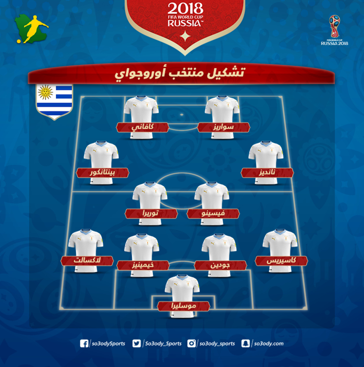 وجاء تشكيل منتخب أوروجواي كالأتي: